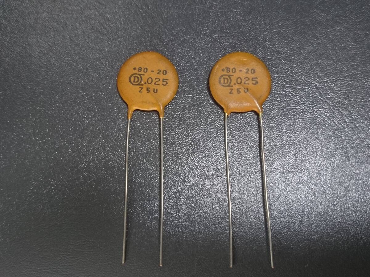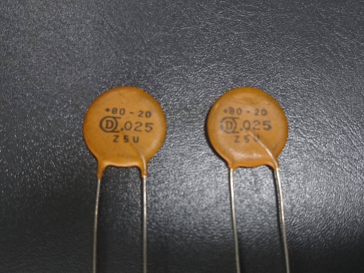 ビンテージ ダイレクトロン セラミックコンデンサー  サークルD  0.025μF  耐圧不明 の未使用品 2個セットです。