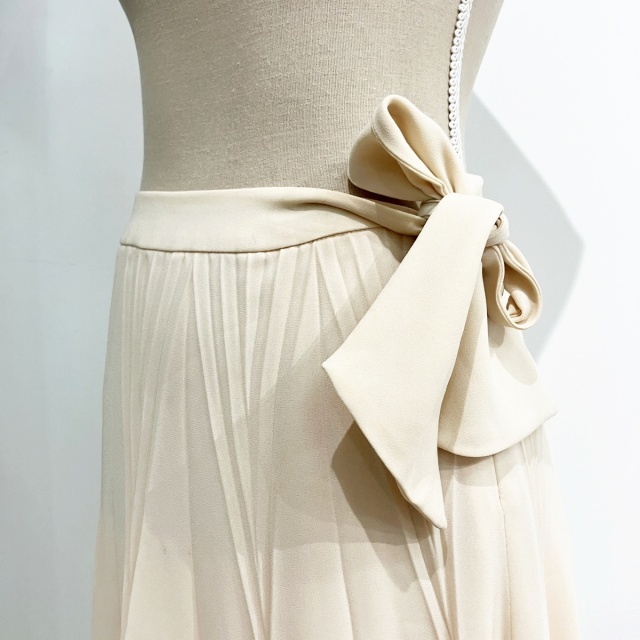 シビラ SYBILLA ひざ丈 スカート リボン ベージュ M ■GY09 レディース