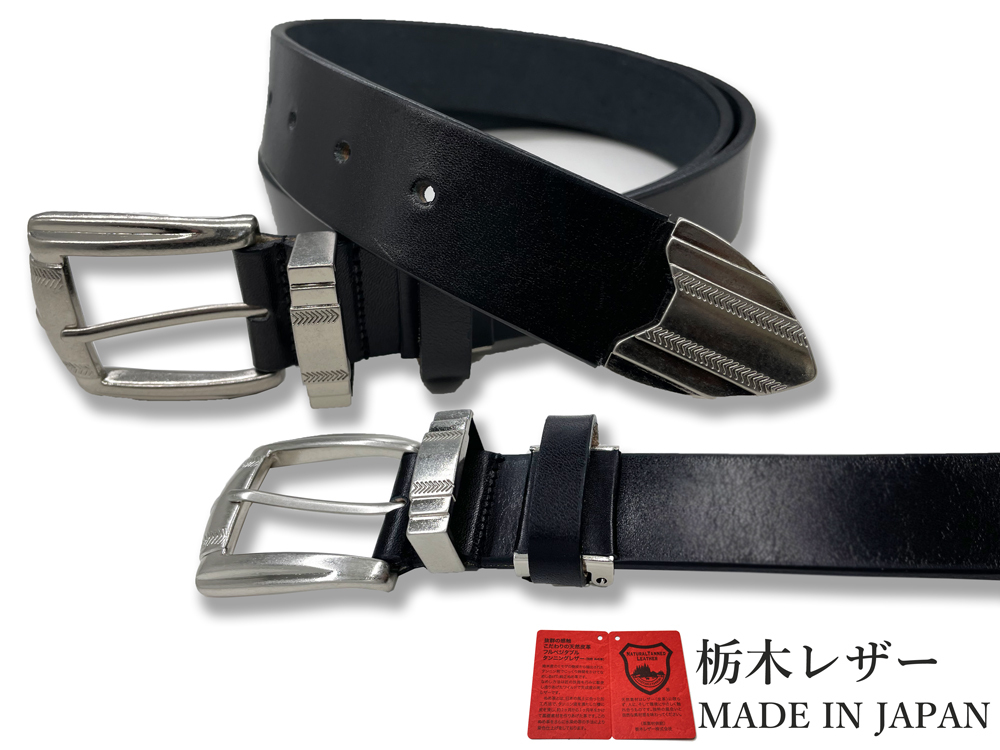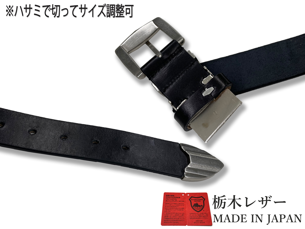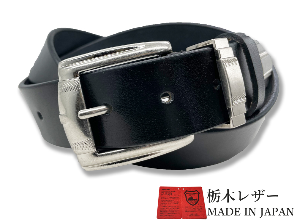 新品 栃木レザー カジュアルベルト Mサイズ プンターレ 付き ウエスタン ベルト メンズ 本革 牛革 35mm ブラック 黒色 w070-M-BLACK
