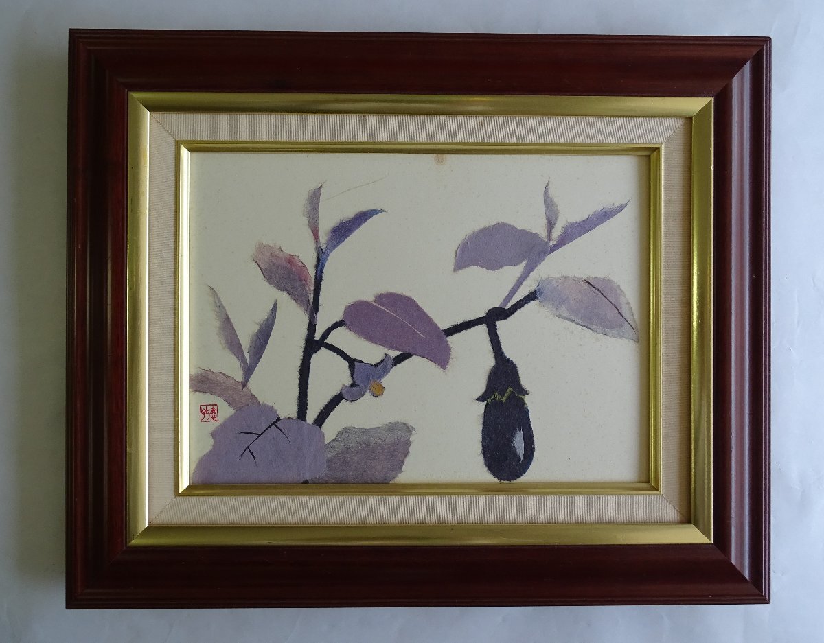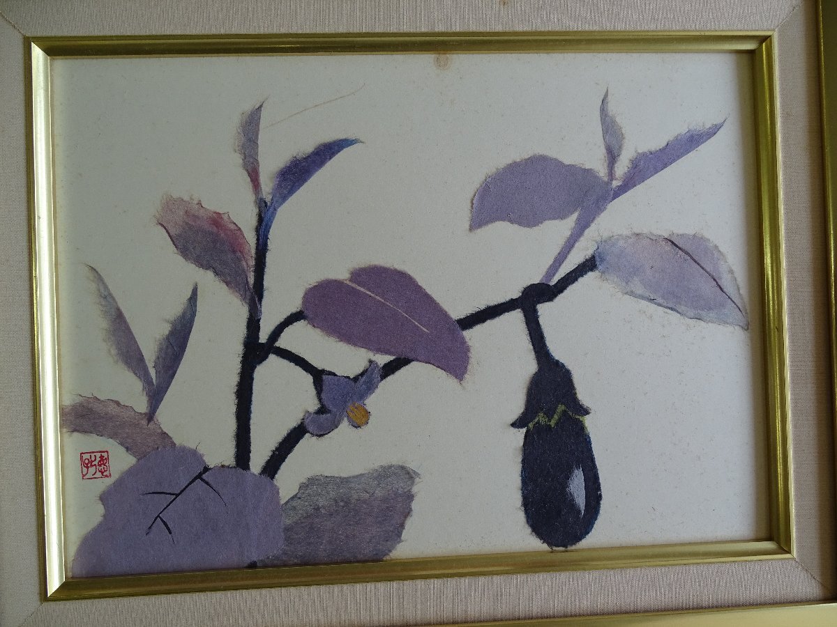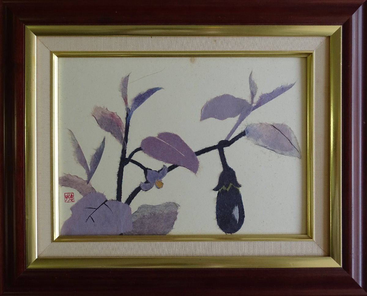 ・作者: 並川徳子 ・画題: なす ・技法: 和紙ちぎり絵  ・NO-R6-5-9.8