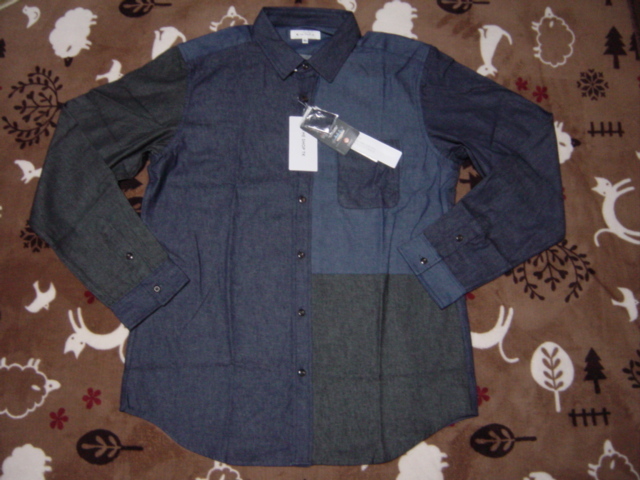 新品未使用のタケオキクチ色落ちしないパターン組み換えデニムシャツです。カラーはネイビー系、パターン組み換えデザインがスタイリッシュに仕上がっています。また、EVERDENIM fabricを使用、洗濯しても色落ちしない、買ったままの色が続くという次世代型デニムシャツです。抗菌防臭効果のある<ポリジン>加工もしています。サイズはXL、丈約76cm 肩幅約49cm 袖丈約66cmです。