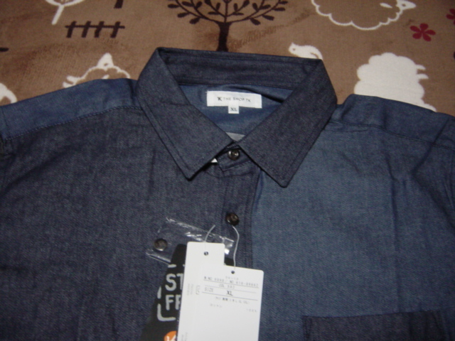 新品未使用☆TKタケオキクチ 色落ちしないパターン組み換えデニムシャツ(XL)