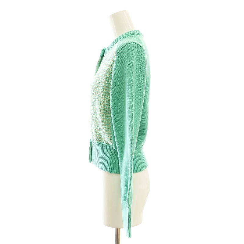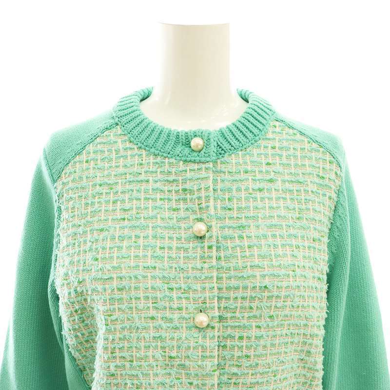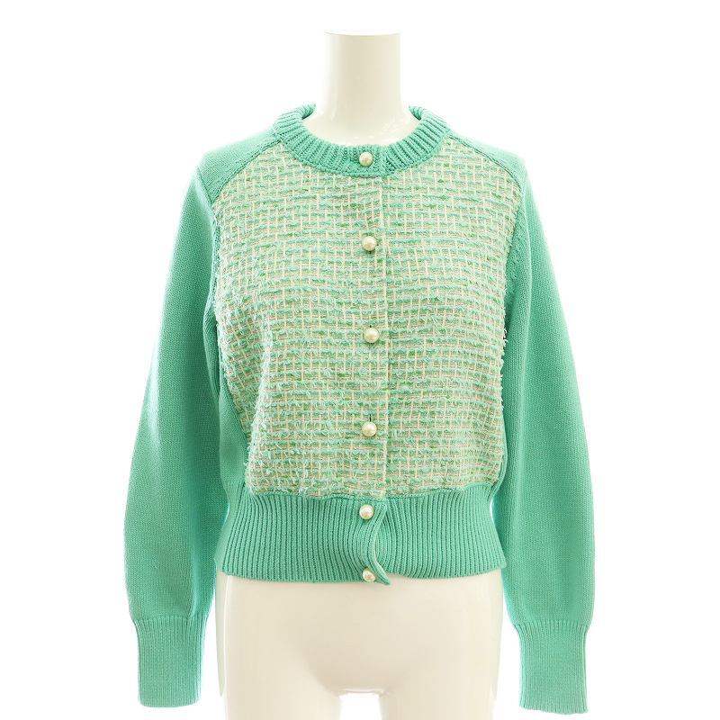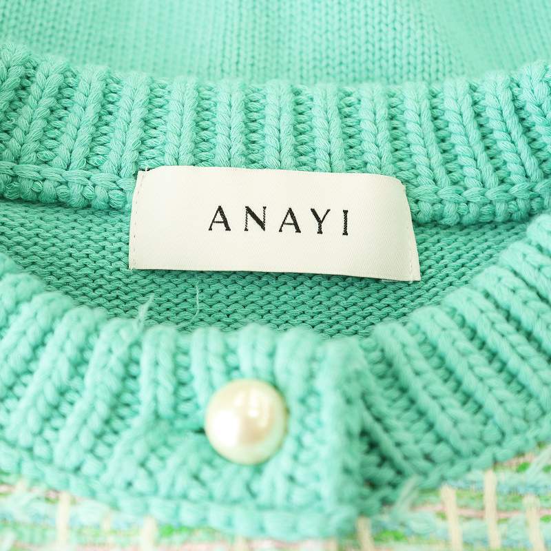 アナイ ANAYI グリーンプレイドツイード カーディガン フェイクパールボタン 36 グリーン ピンク アイボリー /CX ■OS レディース