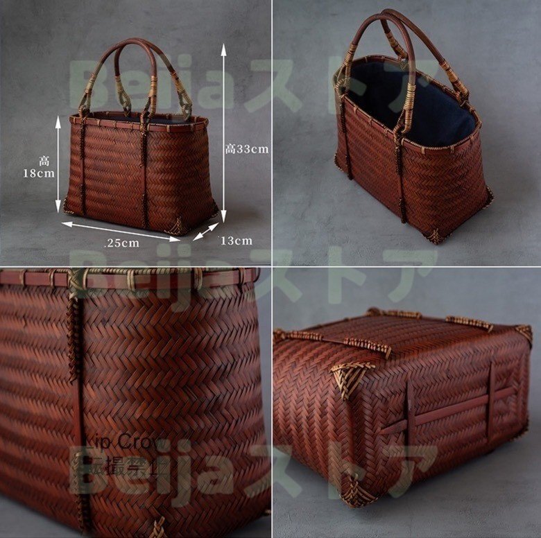 新作カゴバック 手作りカゴ 収納バッグ 自然竹編み上げ バスケット ナチュラル買い物