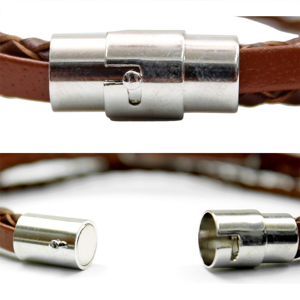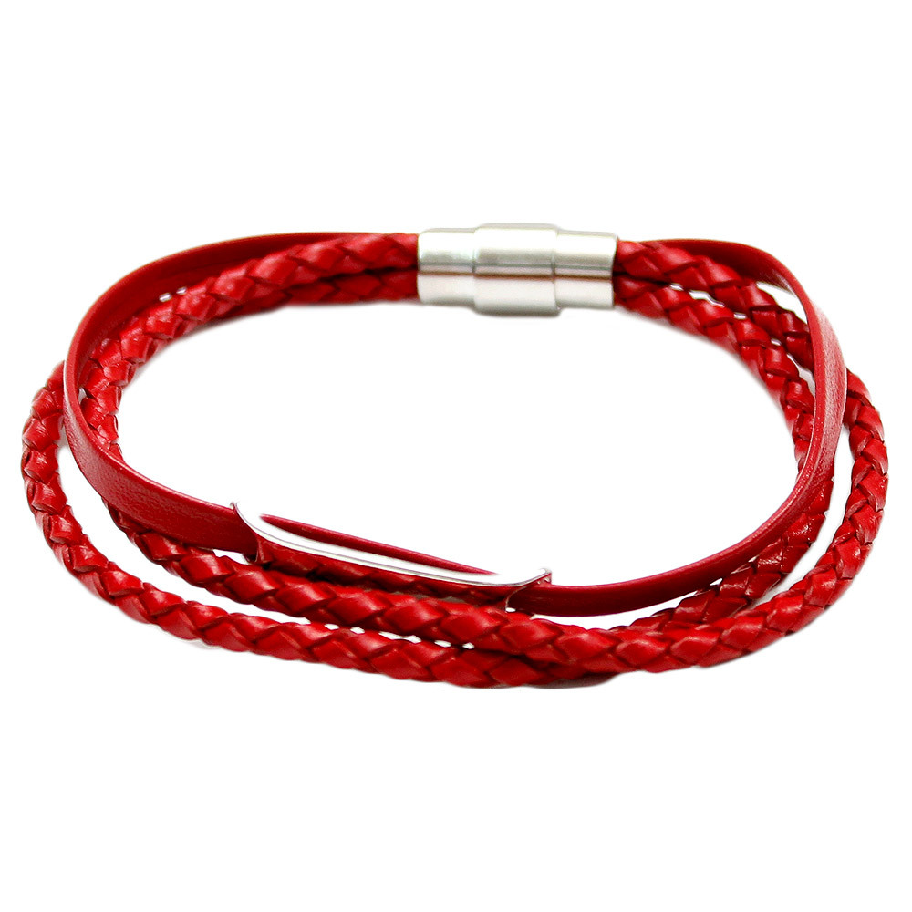 商品名 | 【新品】 F レッド ブレスレット メンズ 牛革 レザー プレート 編み込み 3連 マグネット式 バングル レディース ユニセックス |
