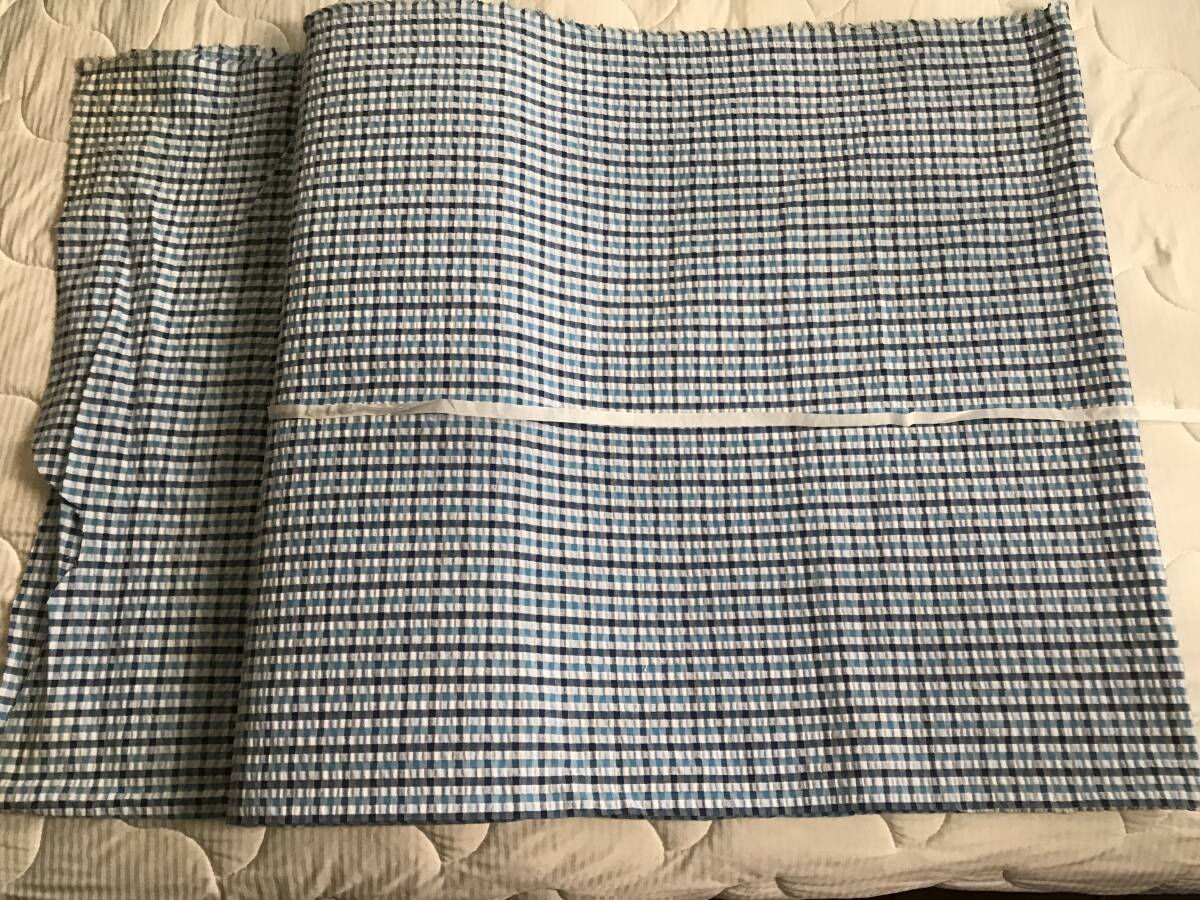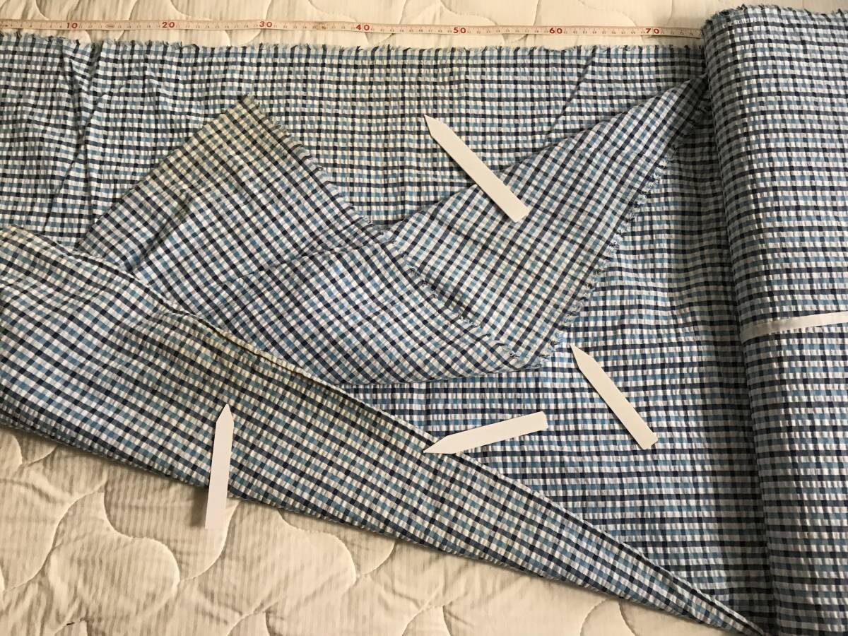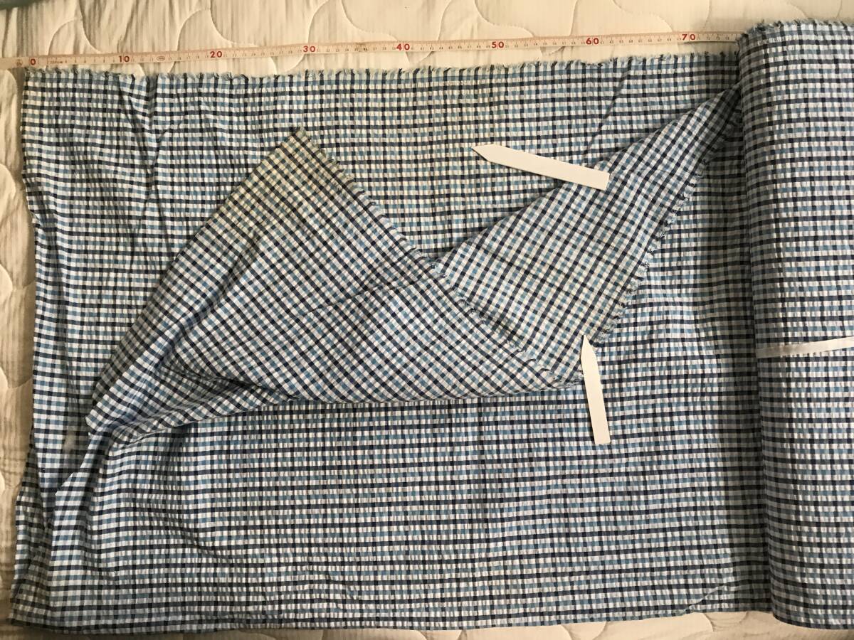 送料¥1350 6.16m×114cm サッカー 綿かも 青白 チェック 取り置き・同梱対応可(要申告