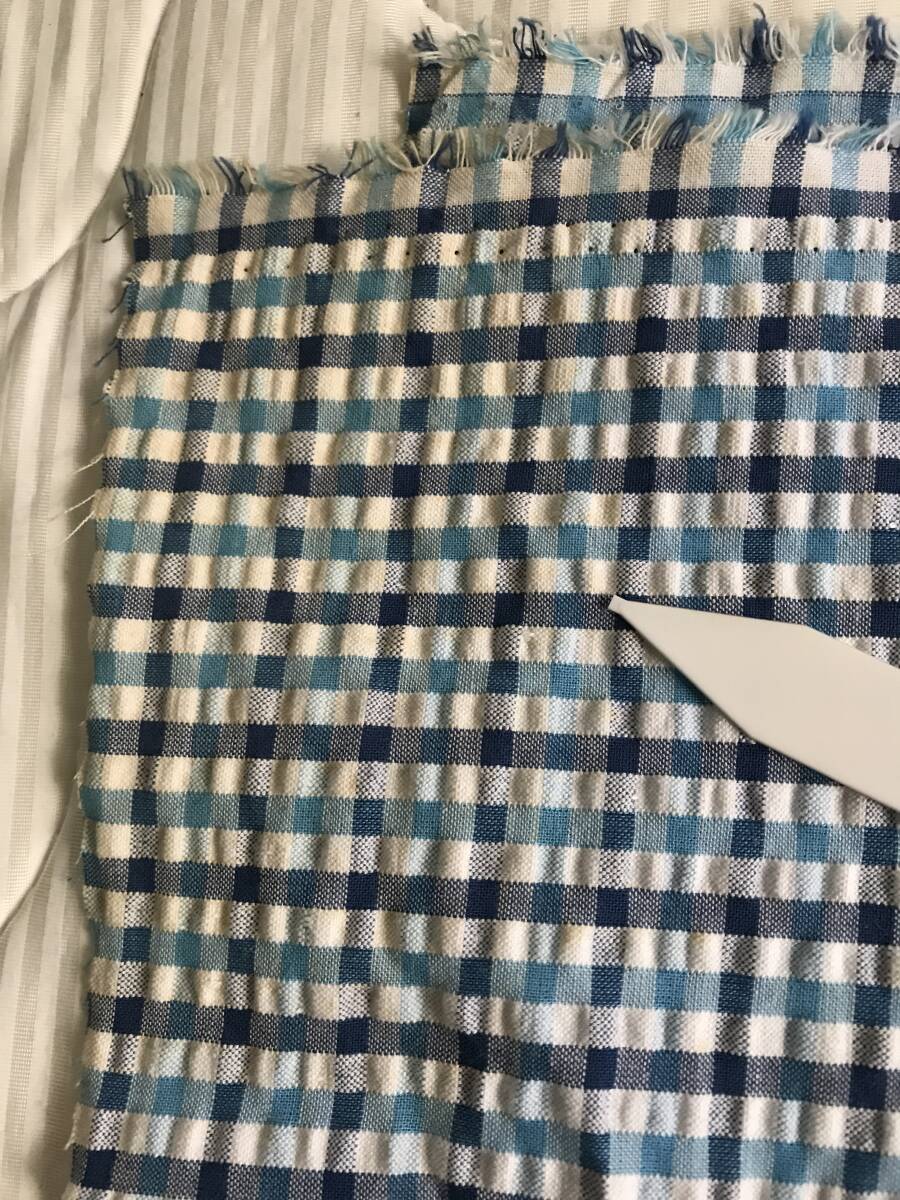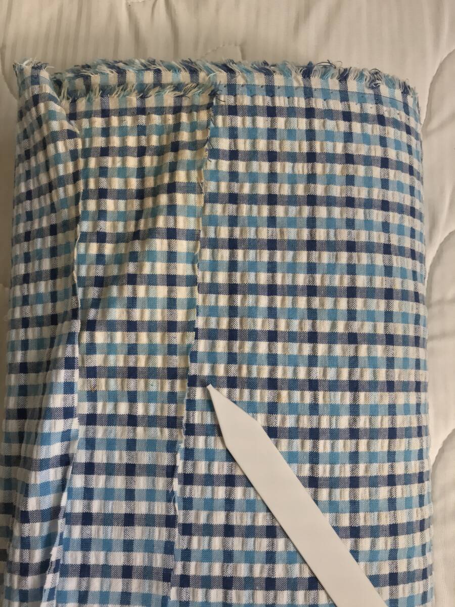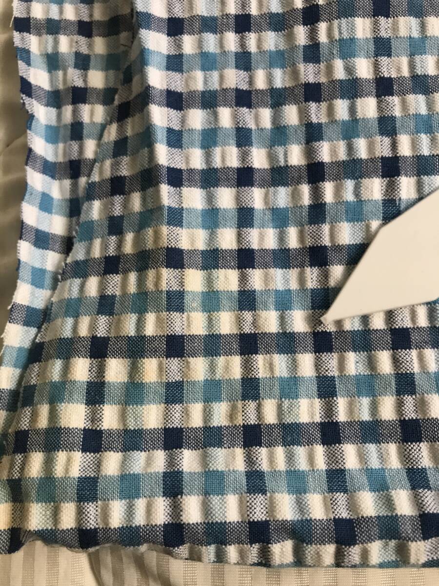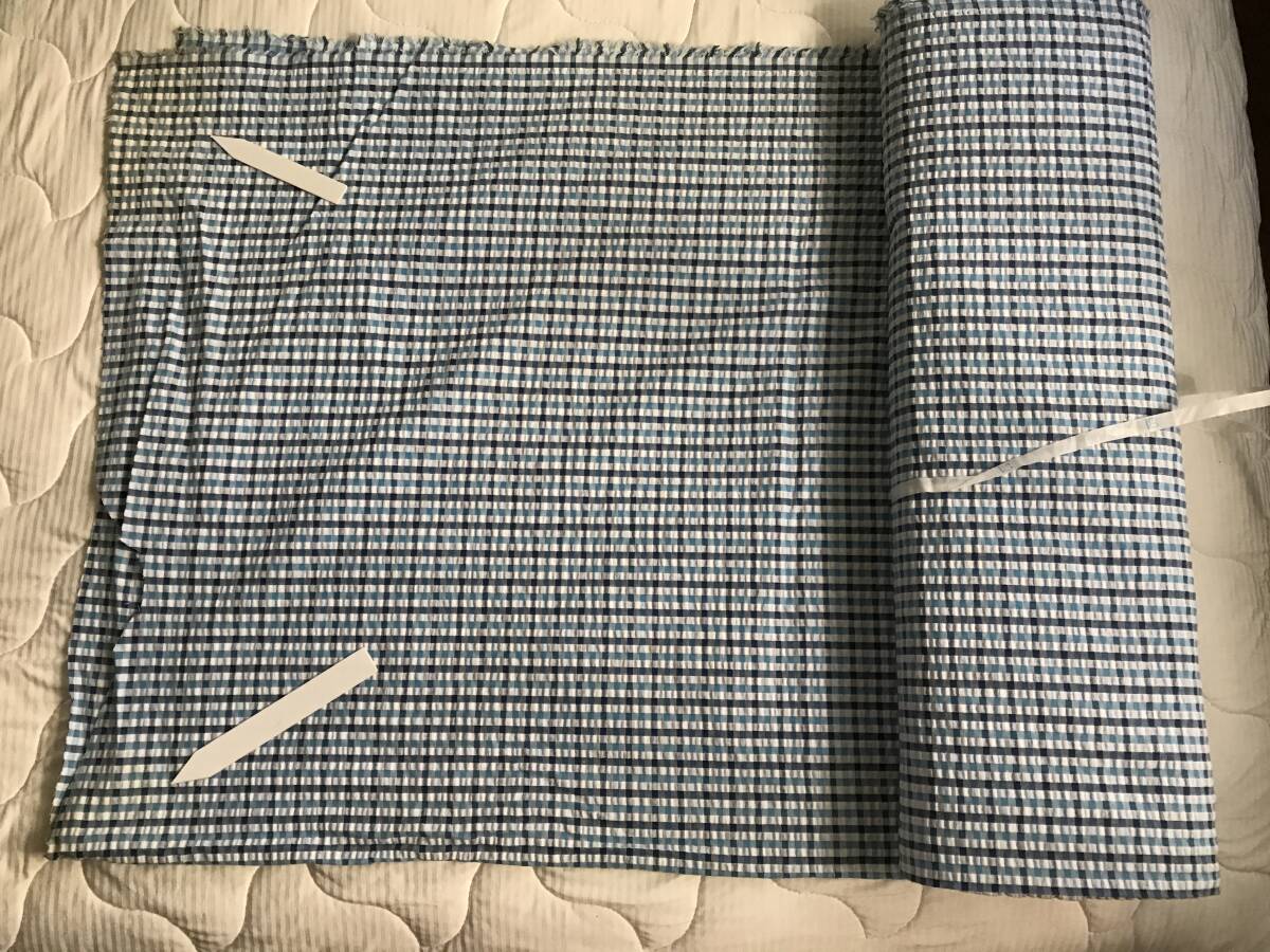 送料¥1350 6.16m×114cm サッカー 綿かも 青白 チェック 取り置き・同梱対応可(要申告