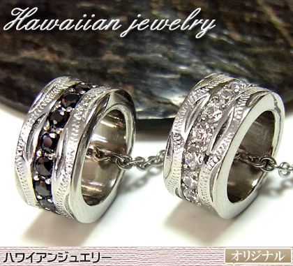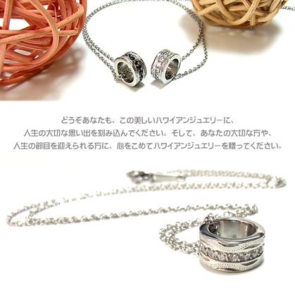 ★アレルギー&温泉&海水浴ご使用OK★ハワイアンジュエリー★ステンレスネックレス★ブラック&クリアジルコニアエタニティー&カレイキニ★