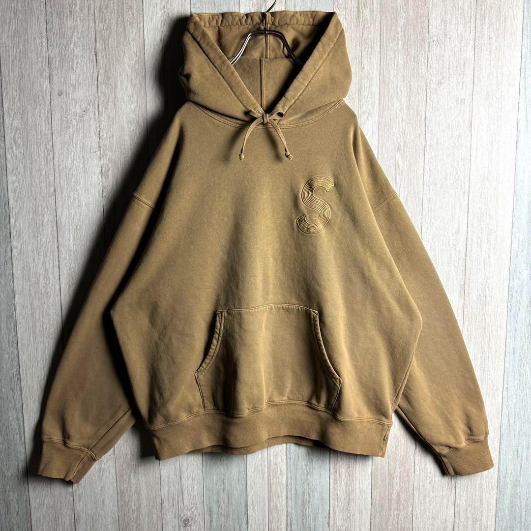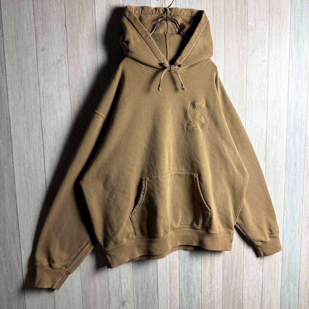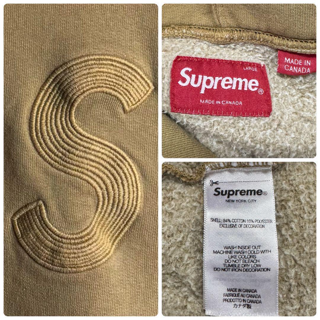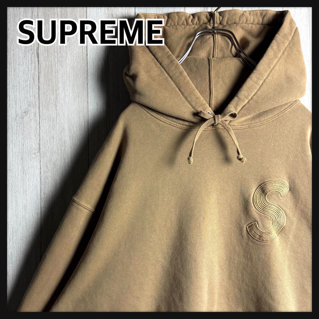 【人気デザイン&希少カラー・美品】カナダ製 SUPREME シュプリーム 同色刺繍 Sロゴ 肉厚スウェット フーディー パーカー ライトブラウン L