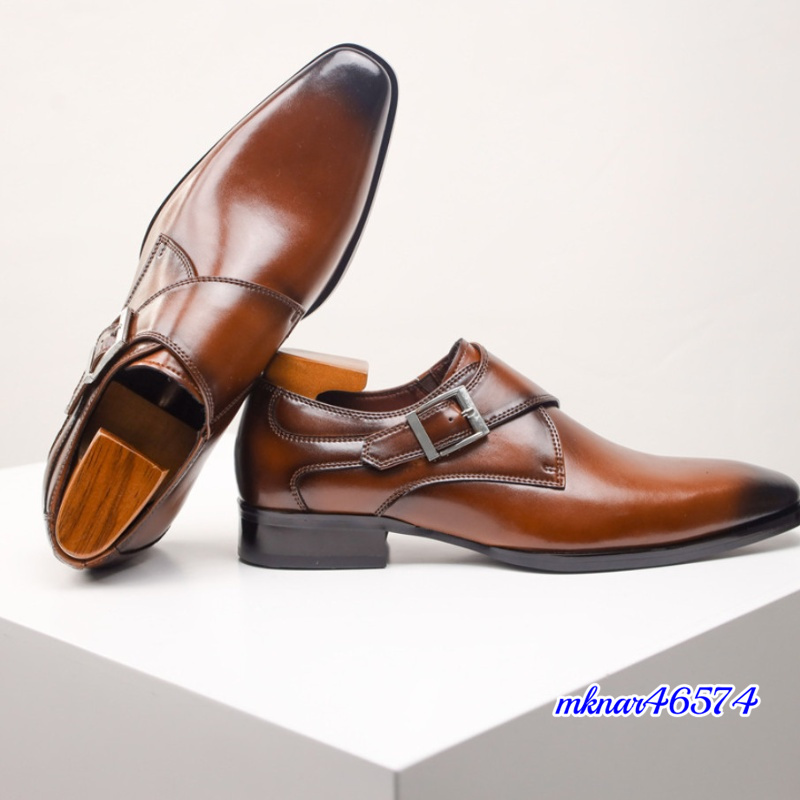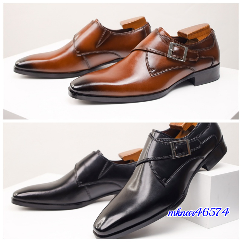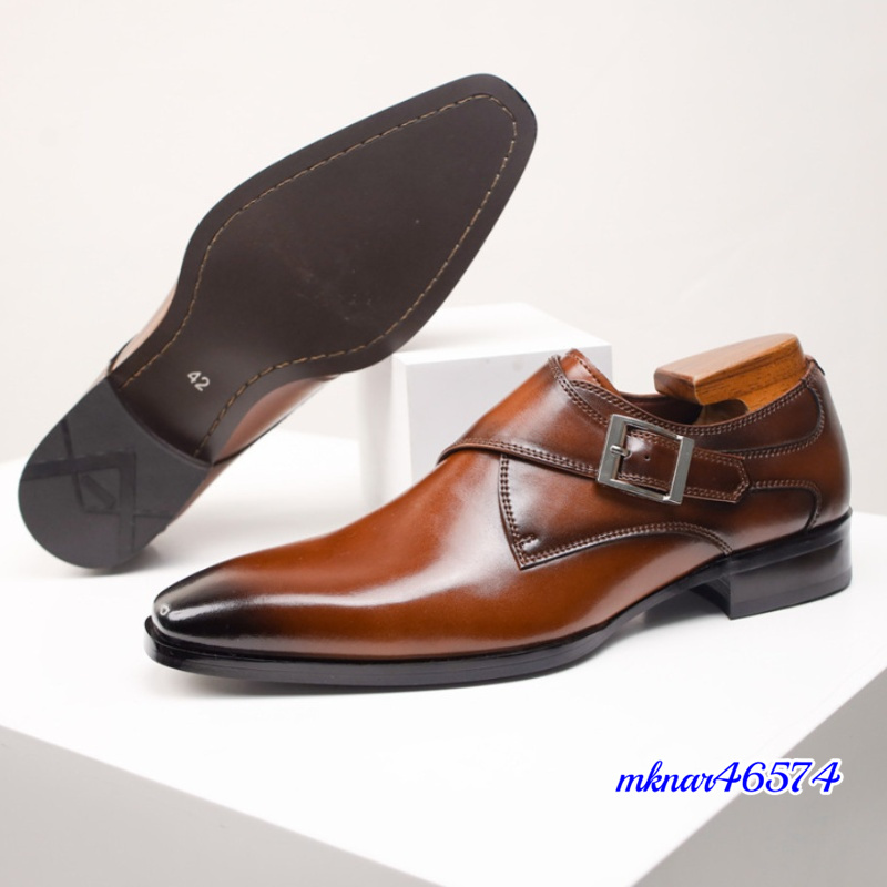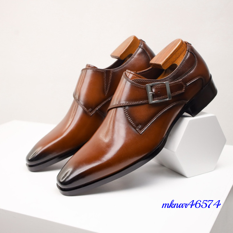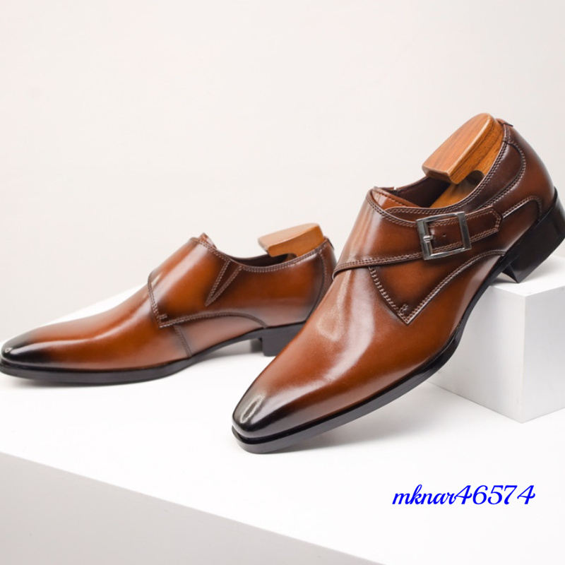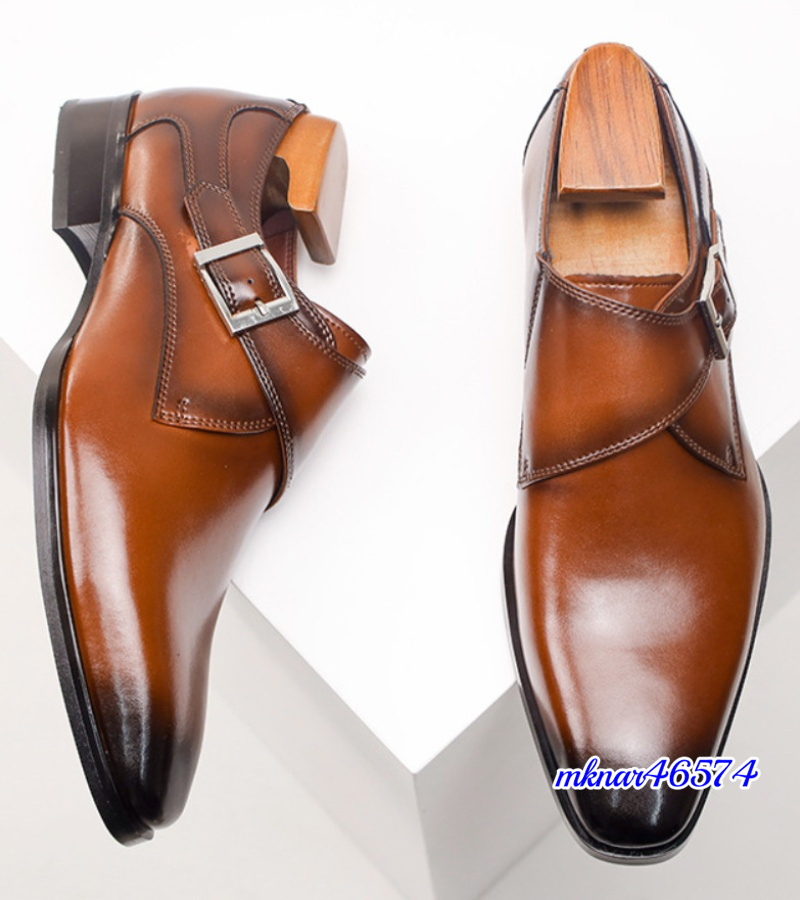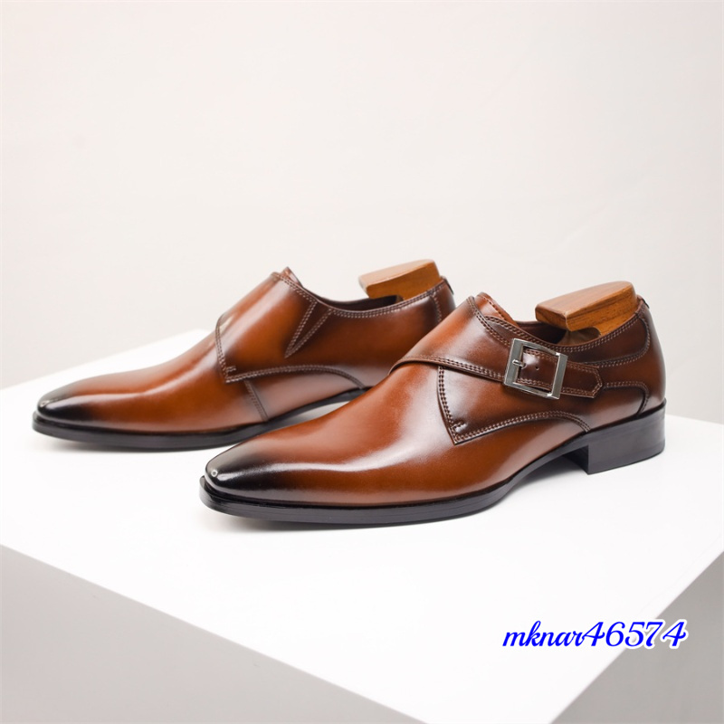 人気新品 シューズ メンズ ビジネスシューズ 牛革 イギリス風 レザーシューズ モンクストラップ フォーマル 紳士靴 ブラウン 25cm