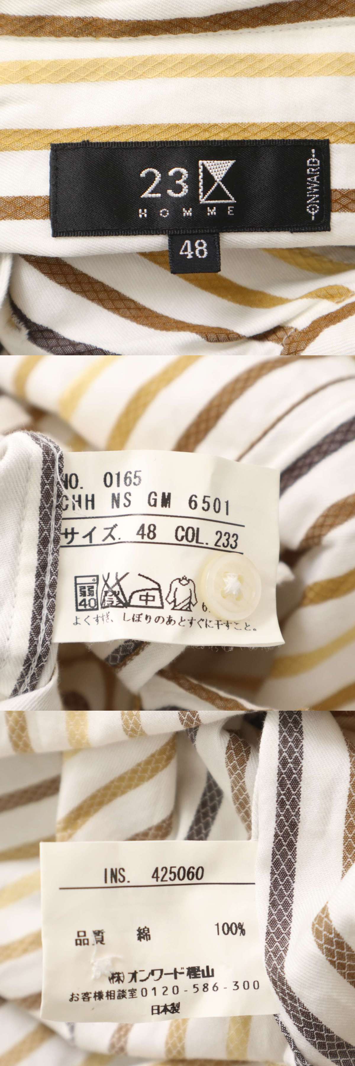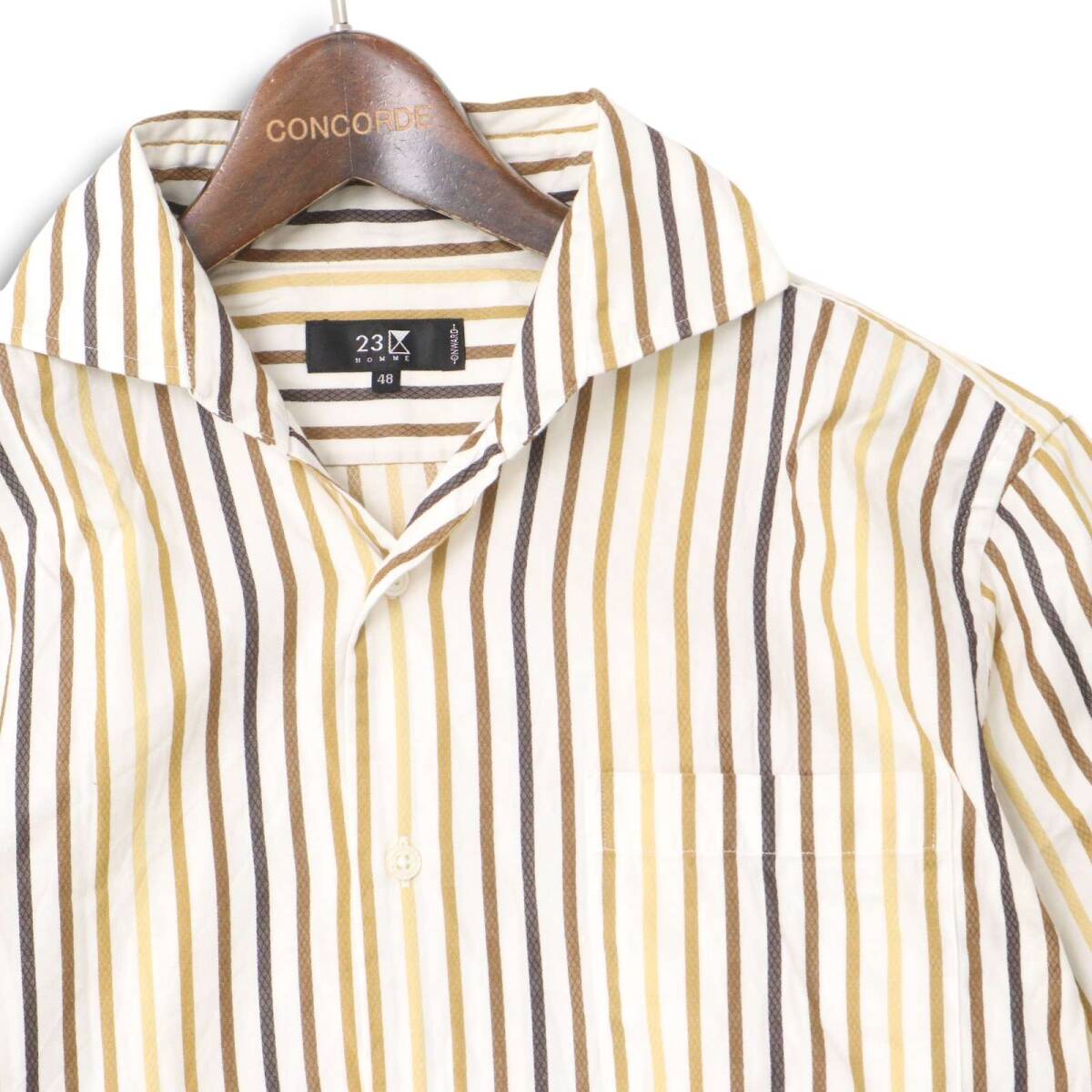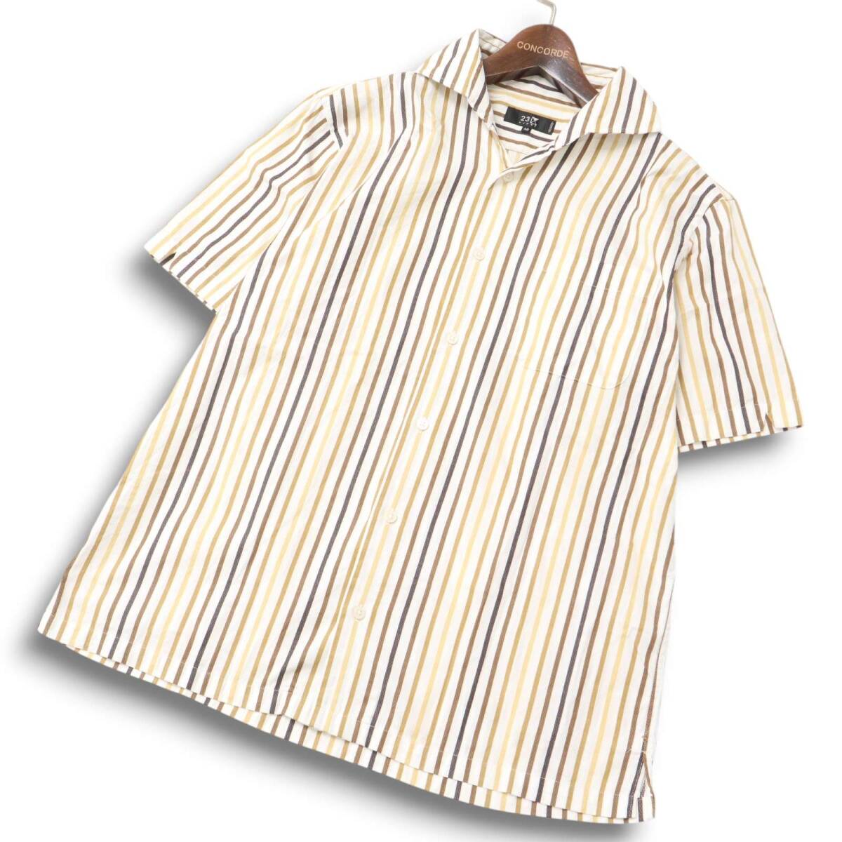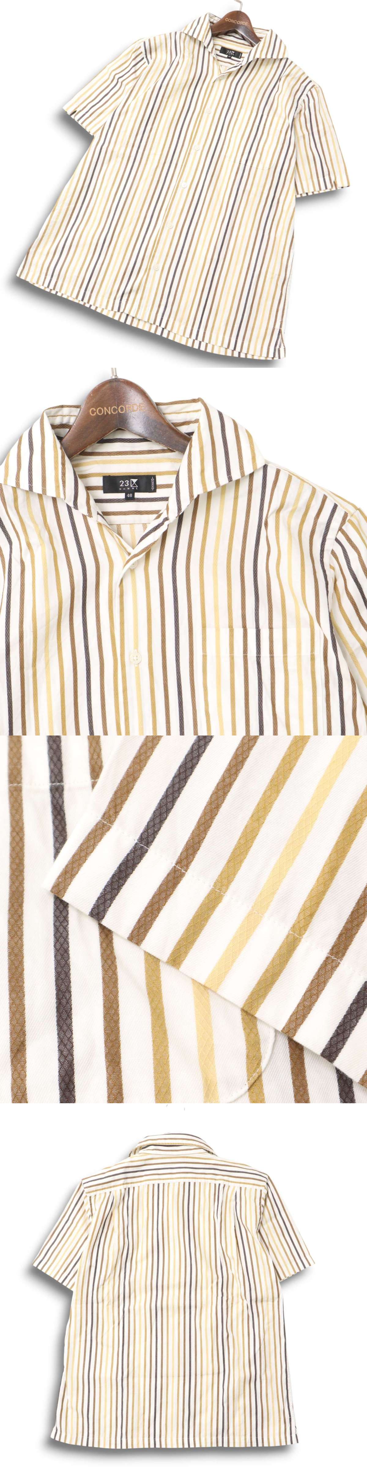 23区 HOMME オム 春夏 マルチストライプ★ 半袖 シャツ Sz.48 メンズ 日本製