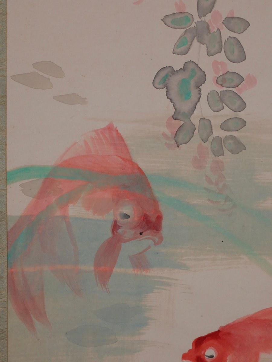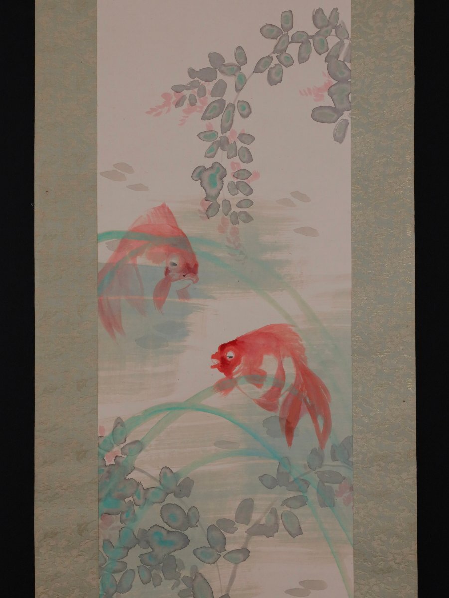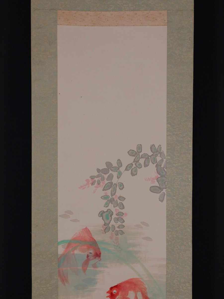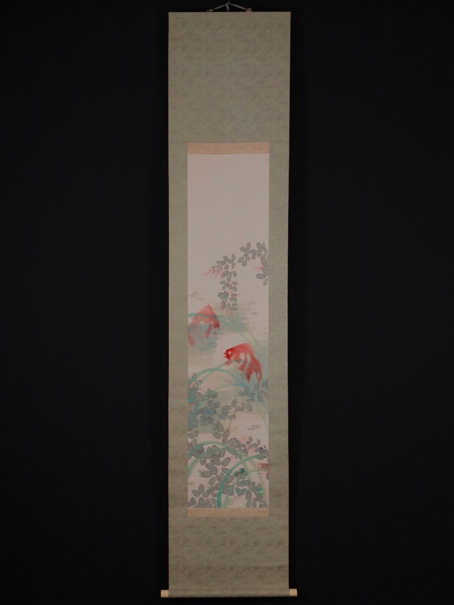 【模写】吉】12664 橋本静水 金魚図 橋本雅邦・横山大観師事 広島県 尾道の人 茶掛け 茶道具 中国画 掛軸 掛け軸 骨董品