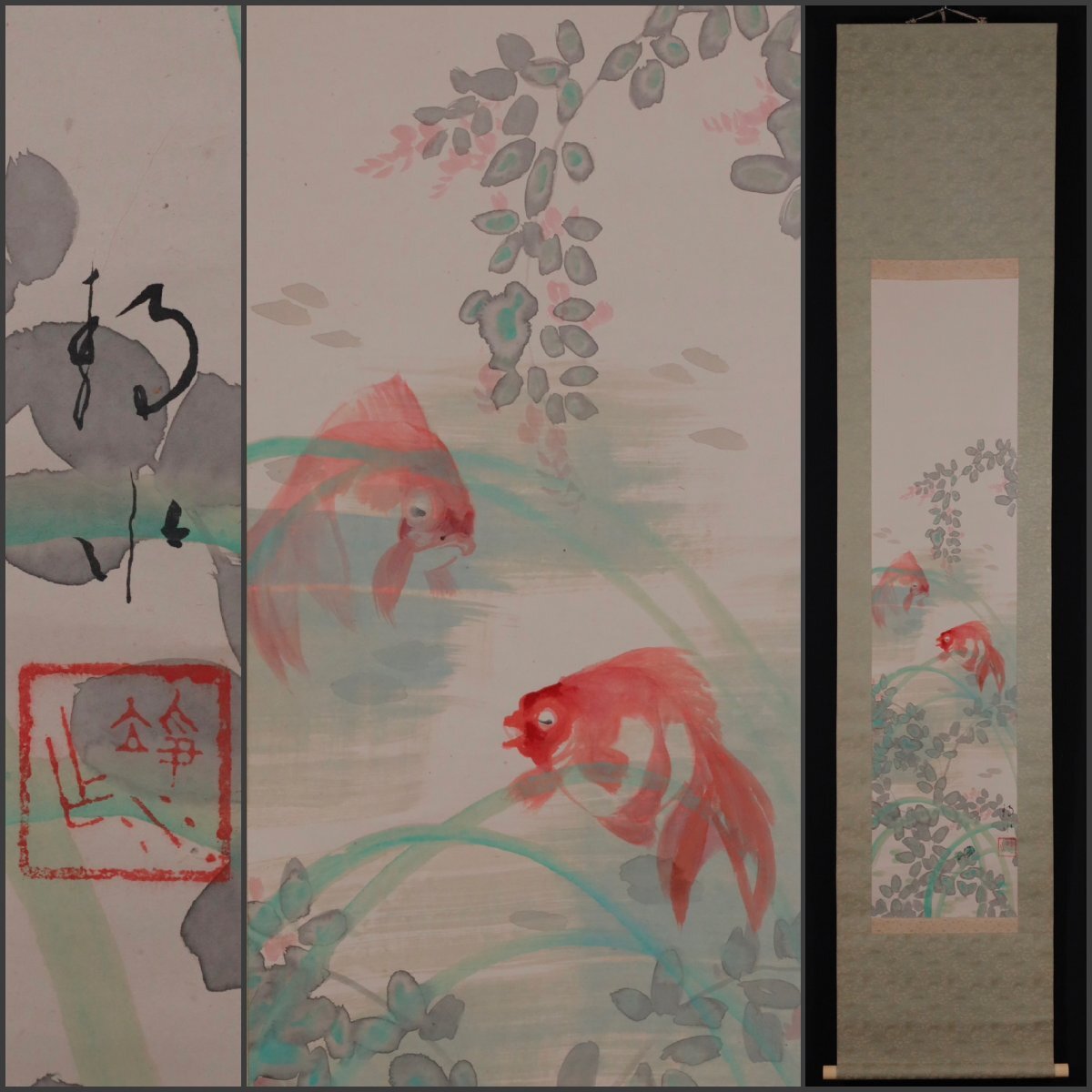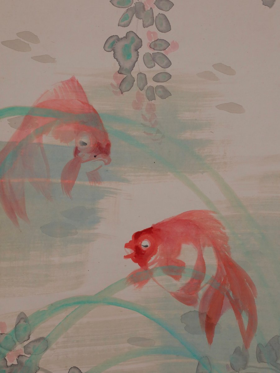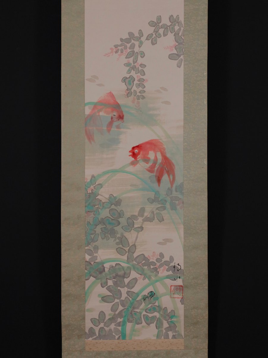 【模写】吉】12664 橋本静水 金魚図 橋本雅邦・横山大観師事 広島県 尾道の人 茶掛け 茶道具 中国画 掛軸 掛け軸 骨董品