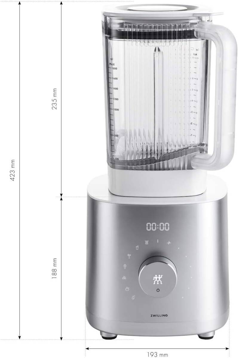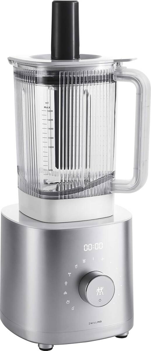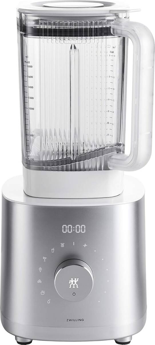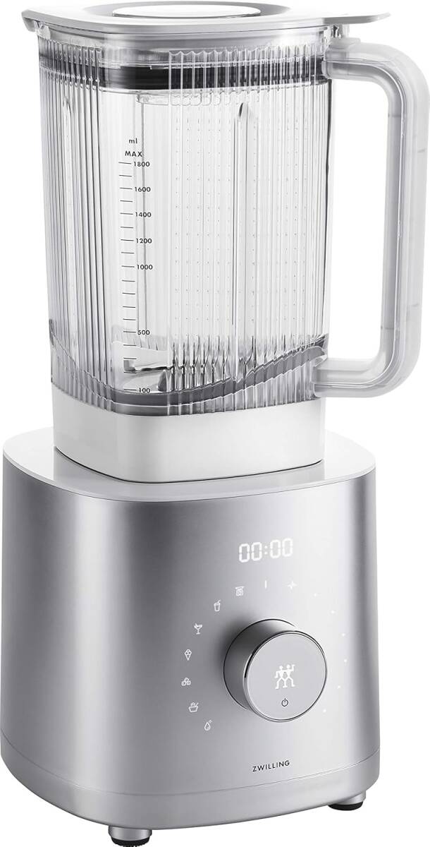 品名 ZWILLING Power Blender 53100-500 1200Wの静かでパワフルなDCモーターに6種類の自動プログラムを搭載したシリーズ最上位モデルのパワーブレンダー。加熱調理で温かなスープも作れる。 「パルスモード」と12段階のスピード設定ができる「マニュアルモード」で食材の大きさや硬さに合わせてブレンドできる。 自動で洗浄できる「クリーニングモード」を搭載。丈夫で軽いトライタン製ジャーを採用し、重さはガラスの約半分、衝撃に強く割れにくい。 |