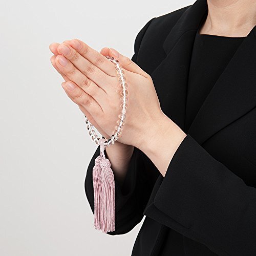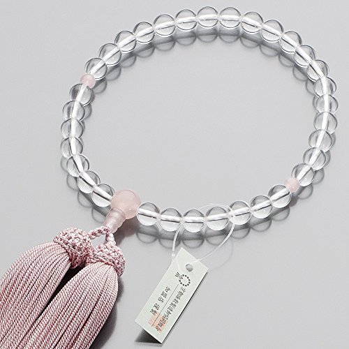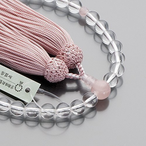 透明な美しい輝きを演出する本水晶を使用した女性用の念珠です。アクセントに淡いピンク色がかわいらしい、女性に大変人気のある紅水晶を使用しました。