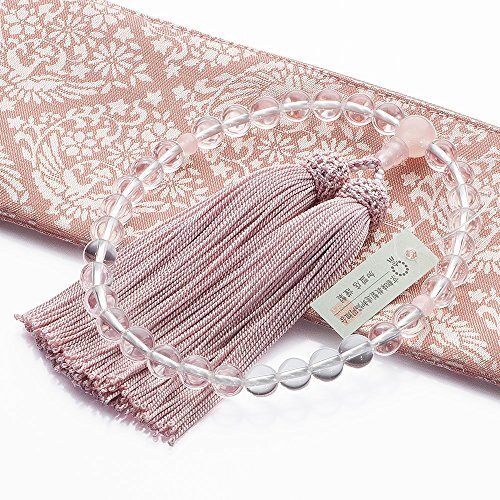 人気商品! 仏壇屋 数珠袋付 正絹房 数珠 紅水晶(ローズクォーツ)8mm玉 本水晶 証明書付 すべての宗派で使える 京念珠 女