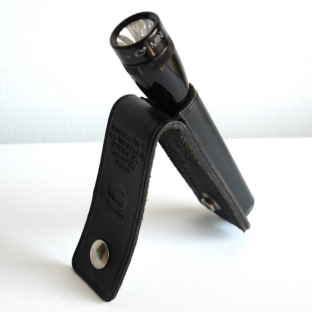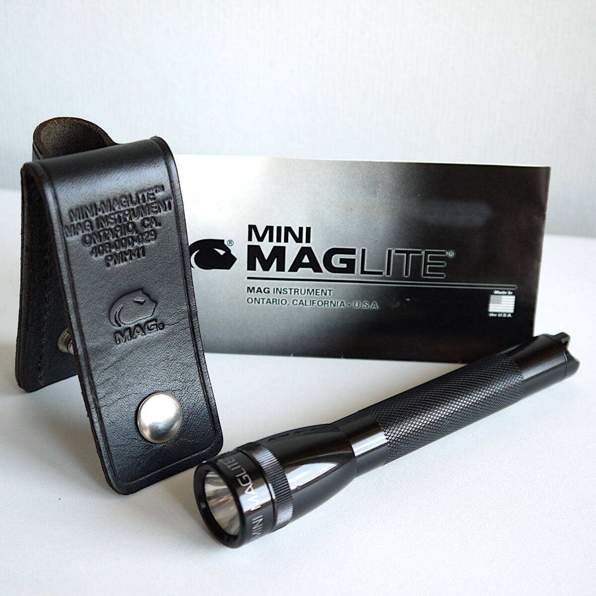 MINI MAG-LITE AA ミニマグライト〈 MAGLITE純正・本革ホルダー&取説 セット 〉MADE IN U.S.A. ブラック 美品