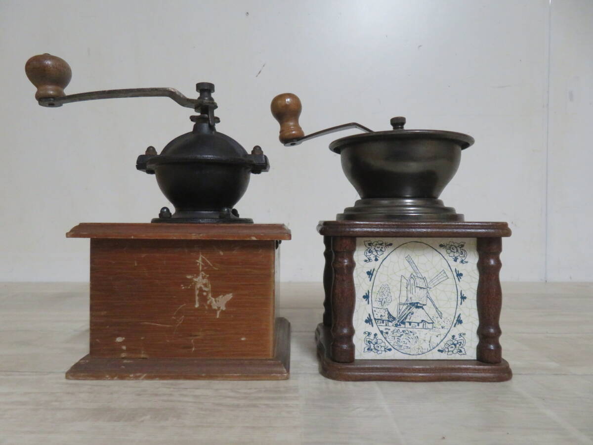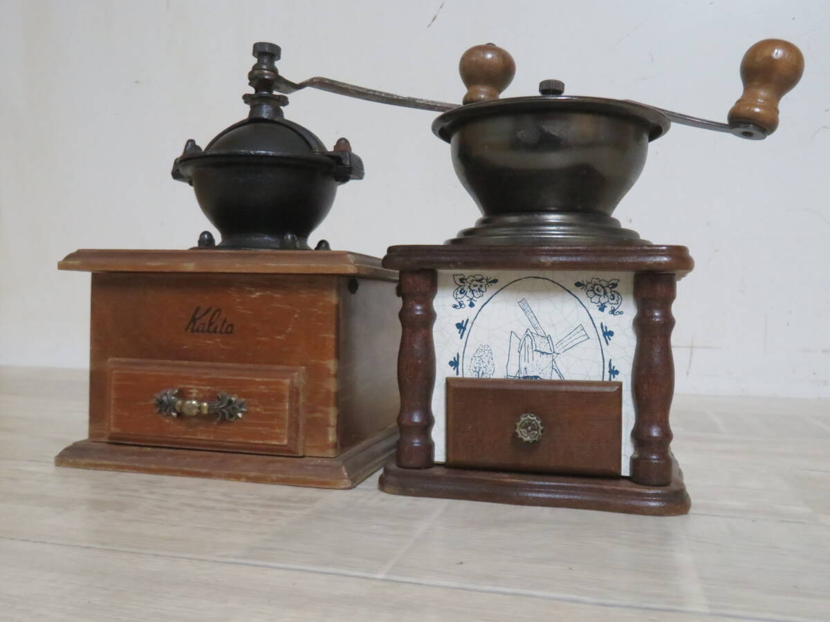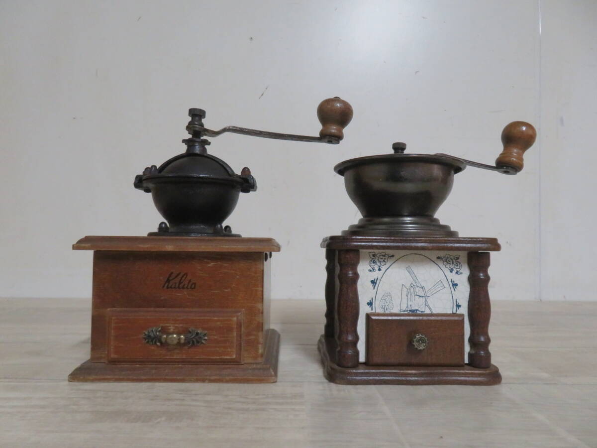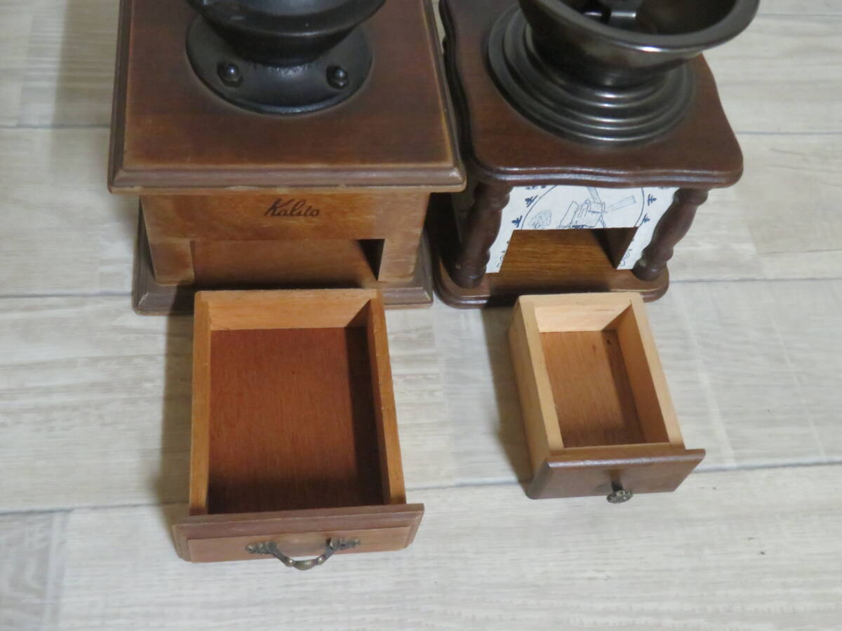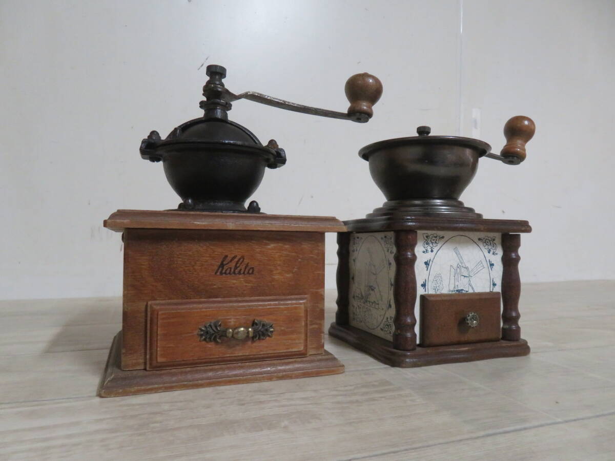 カリタ 手動式 Kalita + メーカー不明 詳細不明 / 木製 手挽き アンティーク コーヒーミル 計2台 まとめ売り