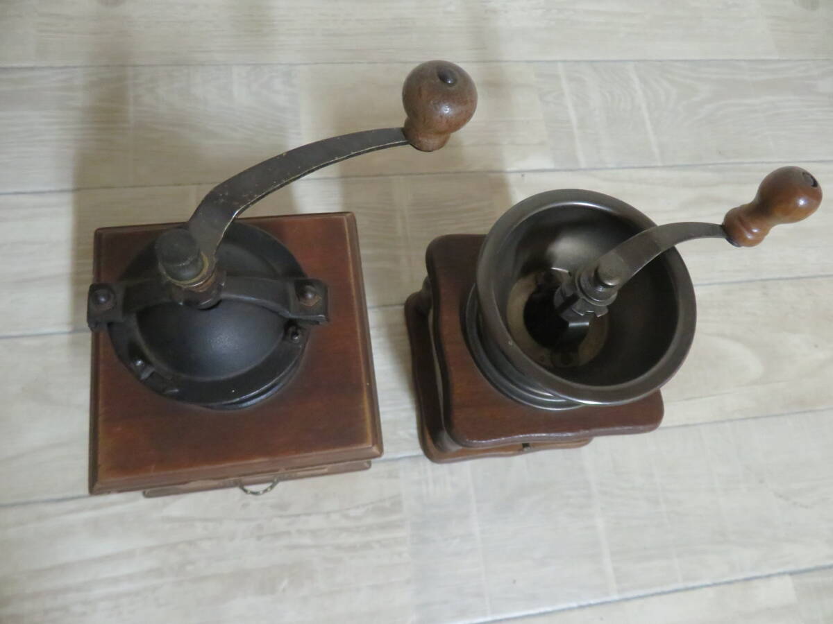 カリタ 手動式 Kalita + メーカー不明 詳細不明 / 木製 手挽き アンティーク コーヒーミル 計2台 まとめ売り の出品になります。