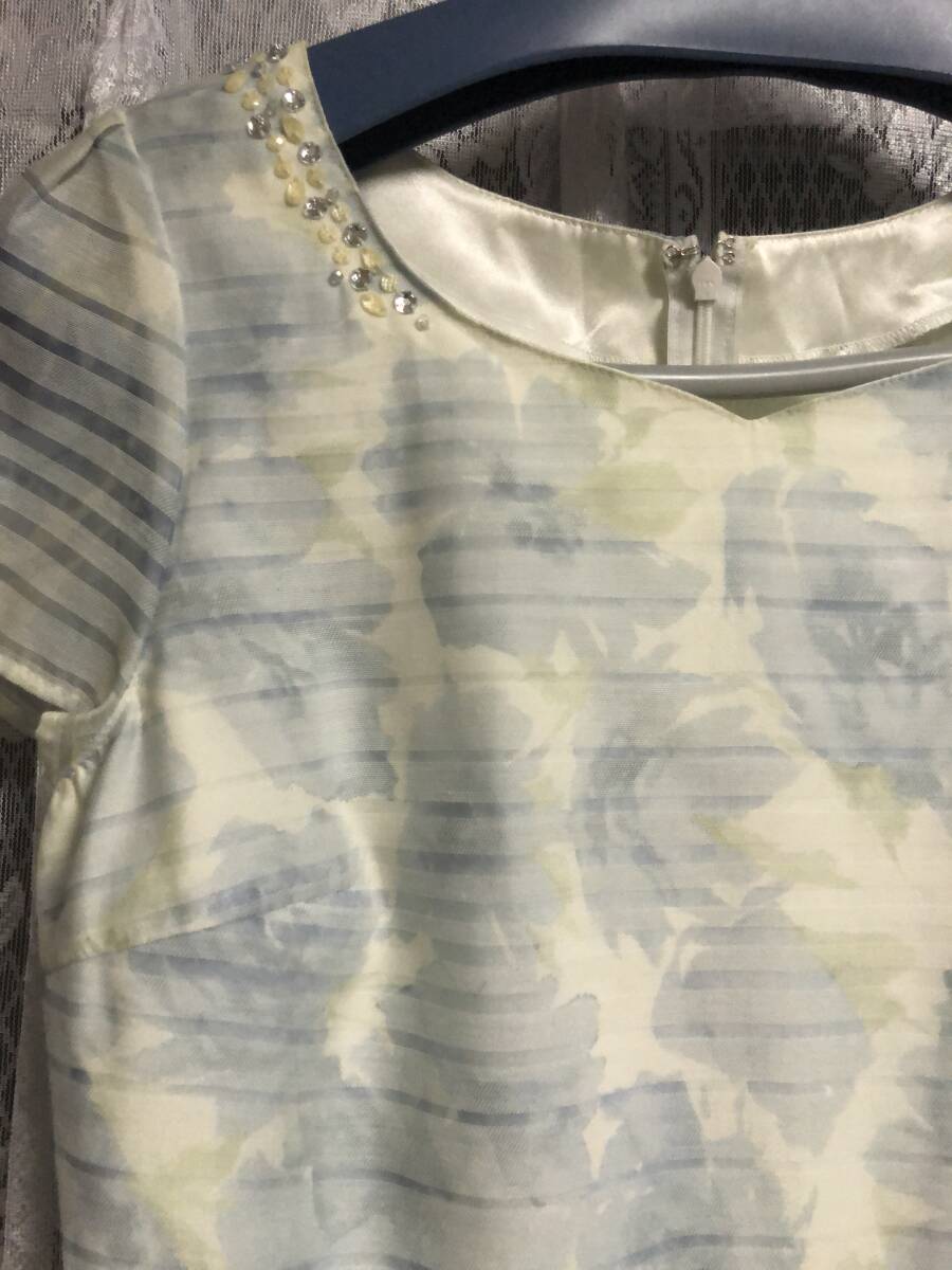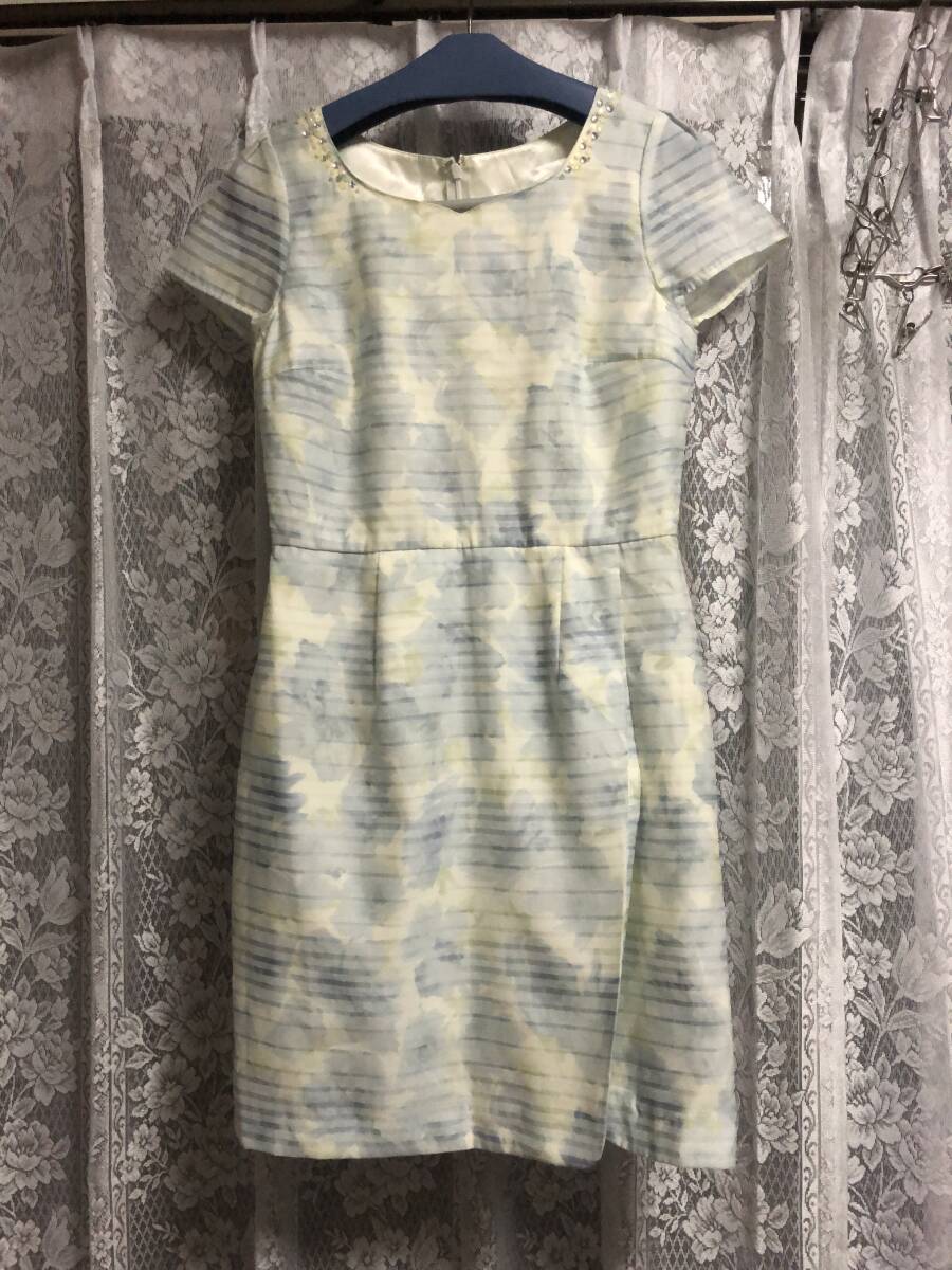 淡い色使いの花柄にうっすらと見えるボーダーが爽やかなワンピース。すっきりとしたシルエットにハート形のネックラインがデコルテを綺麗に見せエレガントさをプラスします。これ一枚で夏の爽やかなお嬢様コーディネイトが完成。