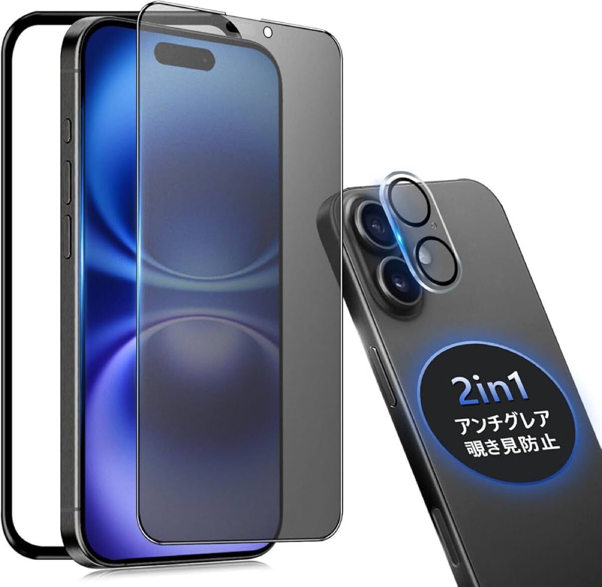 アンチグレア + 覗き見防止】 iPhone 16 ガラスフィルム 覗き見防止 さらさら【1枚】 いPhone16 フィルム 覗き見防止 サラサラ アイフォン16 保護フィルム 指紋防止 16 用 のぞき見防止 フィルム 画面フィルム 反射防止 iPhone16 カメラフィルム 付き