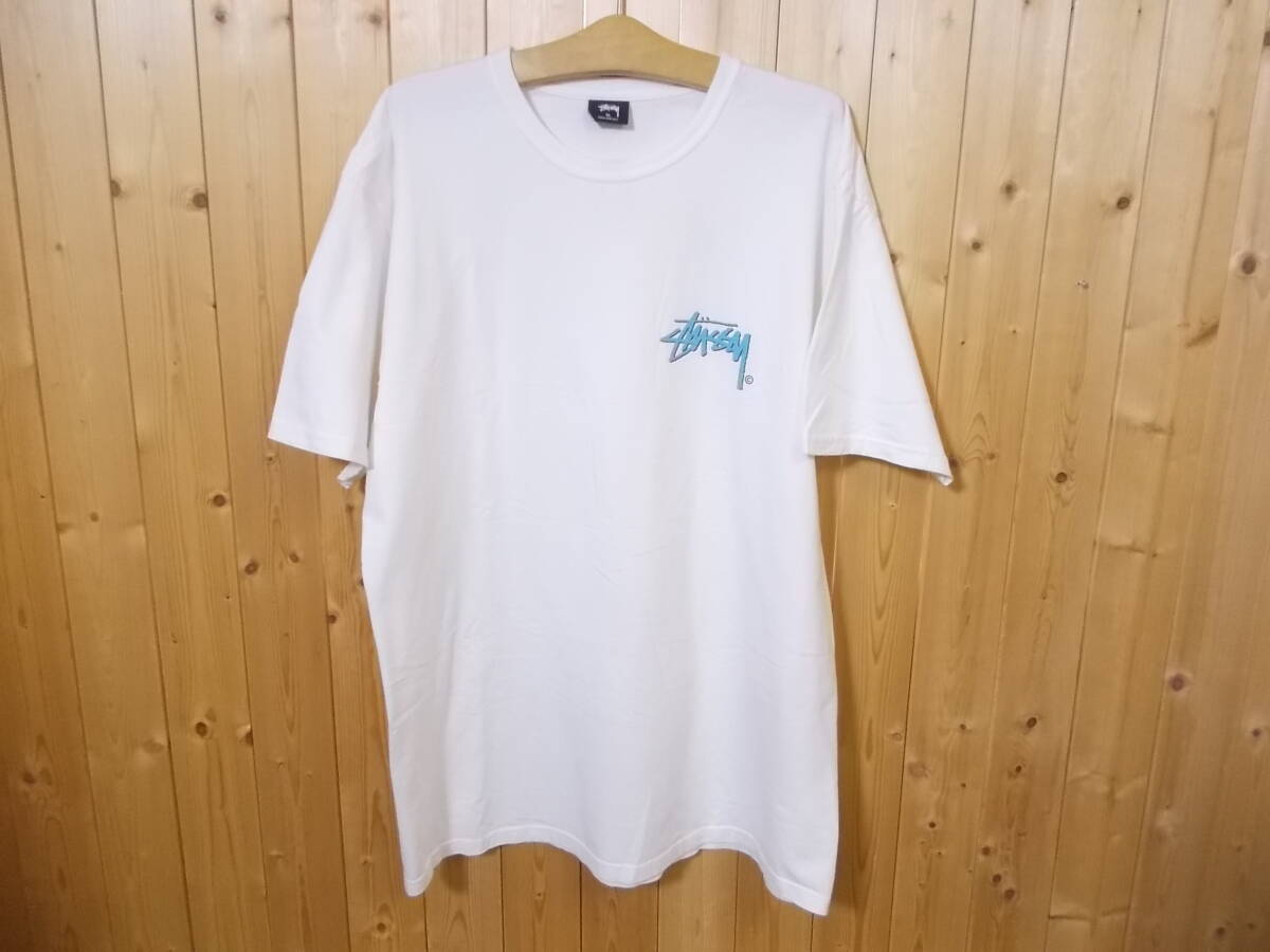 e978◆STUSSY Tシャツ◆XL 大きいサイズ ホワイト色 胸ロゴ ワンポイントロゴ メキシコ製 ステューシー Tシャツ ゆうパケット 7G
