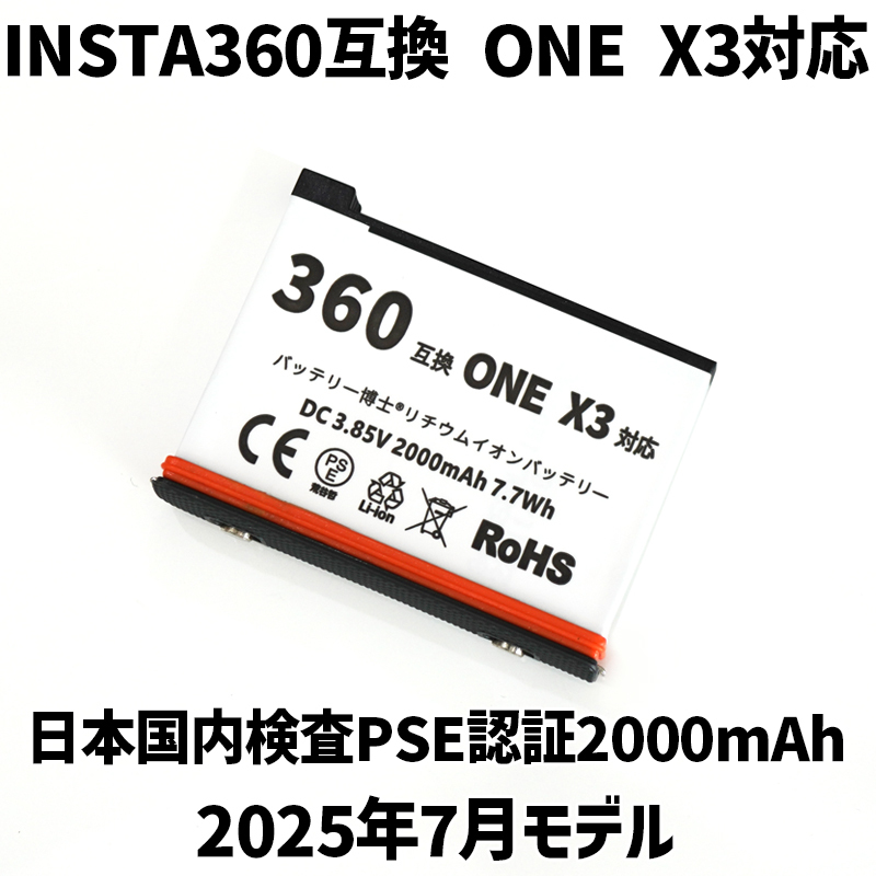 PSE認証2025年7月モデル Insta360 ONE X3 互換 バッテリー1個になります。