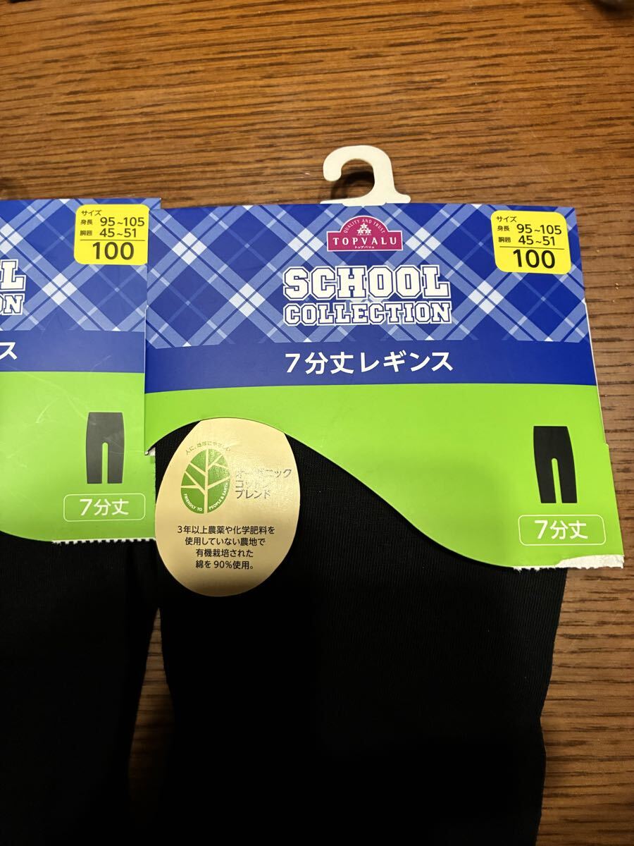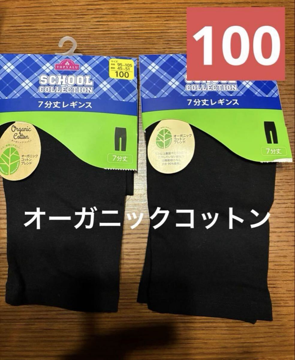 オーガニックコットン使用の7分丈レギンス、サイズ100、ブラック。