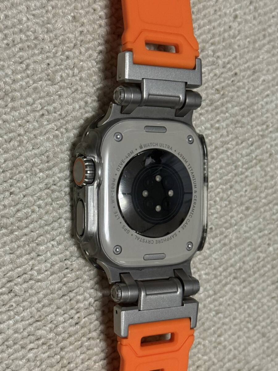【ブラック】Apple Watch メカ風チタンカラースチールメタルコネクタシリコンバンド