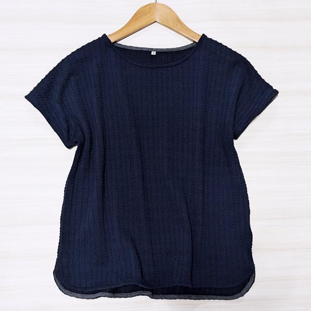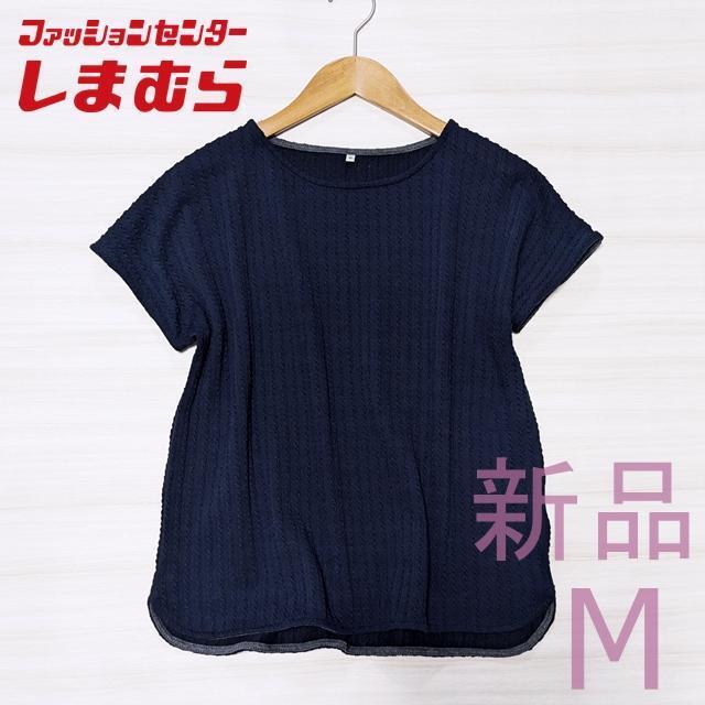 新品 未使用 即決 送料無料 しまむら 半袖 デザインカットソー M ネイビー プルオーバー Tシャツ 紺 リブ 9号