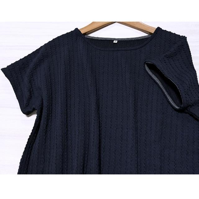 半袖、五分袖、5分袖 、フレンチスリーブ、薄手 、デザインカットソー、プルオーバー、Tシャツ、ブラウス、チュニック、サマーニット、黒、ブラック、濃紺、紺、ネイビー、春、夏、秋、無地、モノトーン、大人カジュアル、きれいめ、レディース、M、9号、フリーサイズ、FREE