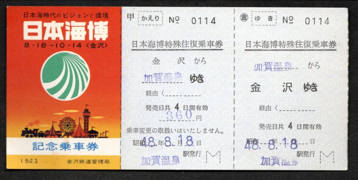 昭和48年 日本海博特殊往復乗車券(金沢)加賀温泉駅