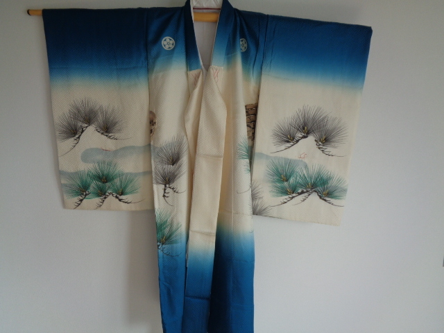 男児お宮参りの着物 正絹 美品です。紋は、丸に梅鉢