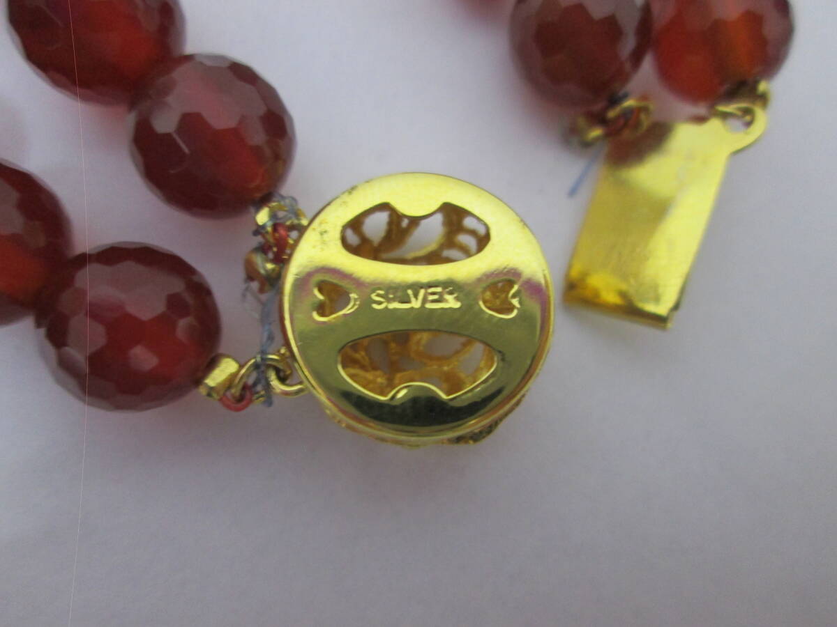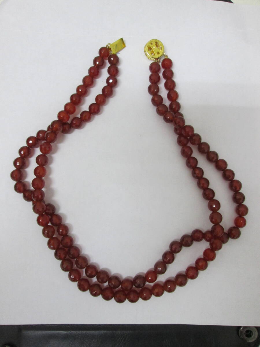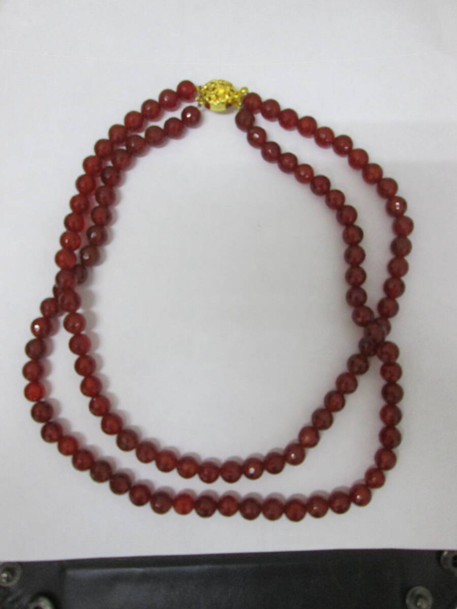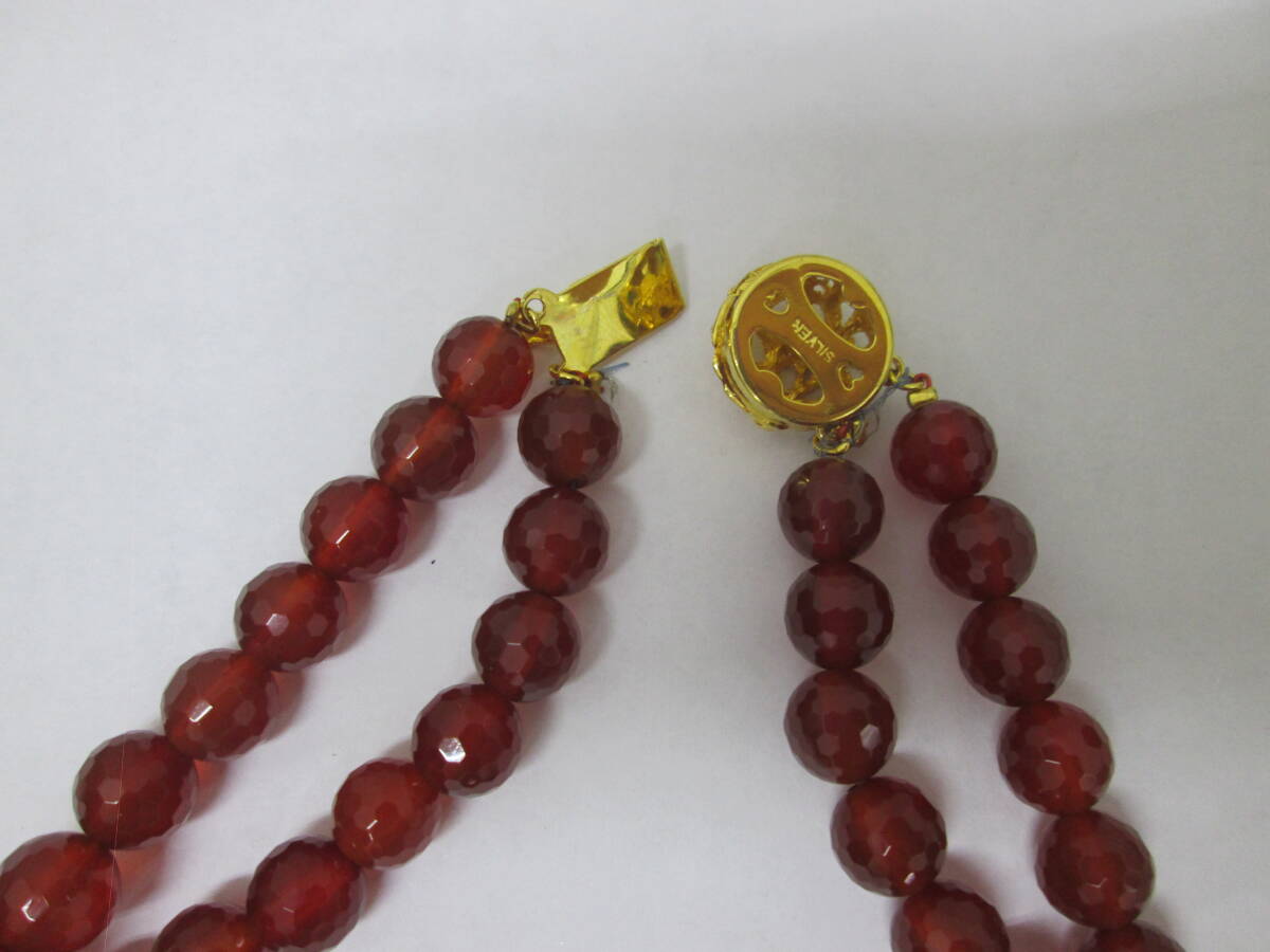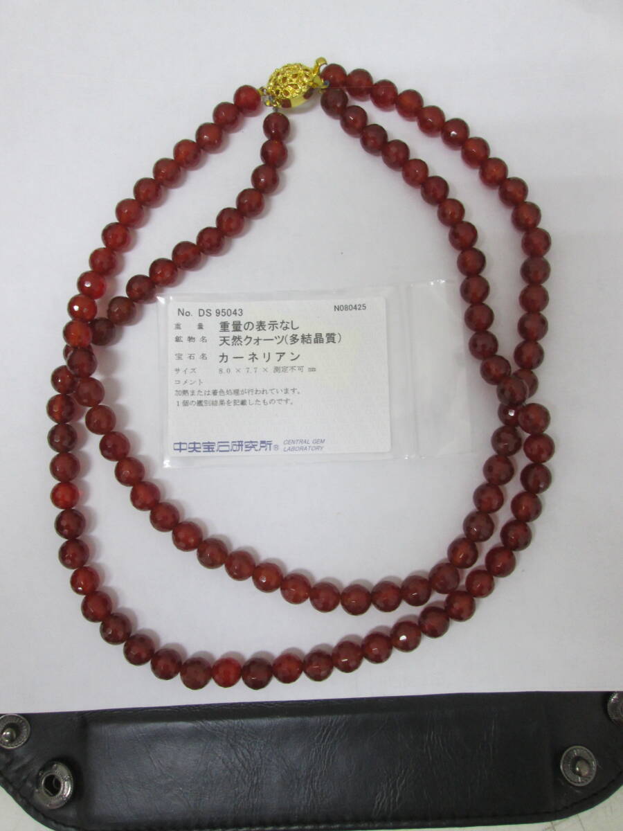 (86)☆カーネリアン ネックレス 天然クォーツ(多結晶質) 玉径約8.0×7.7mm 全長約45.5cm 留具SILVER刻印 中央宝石研究所 ソーティング付
