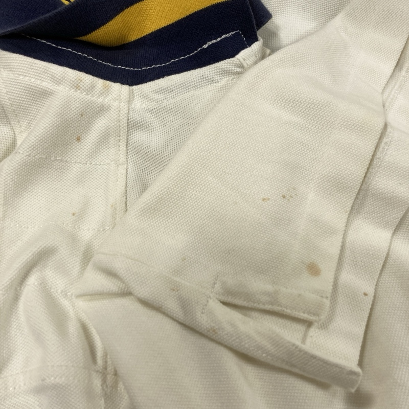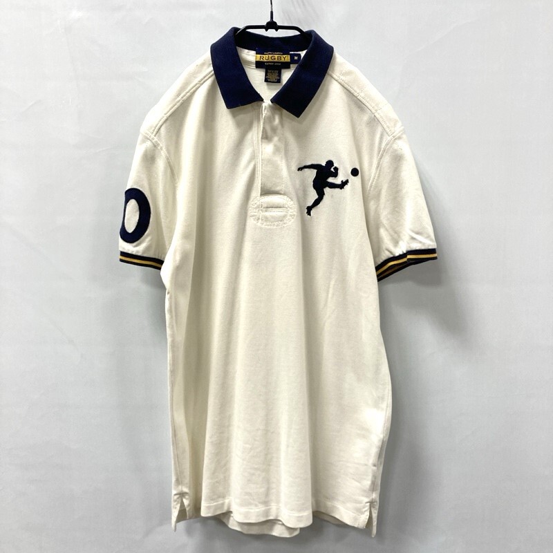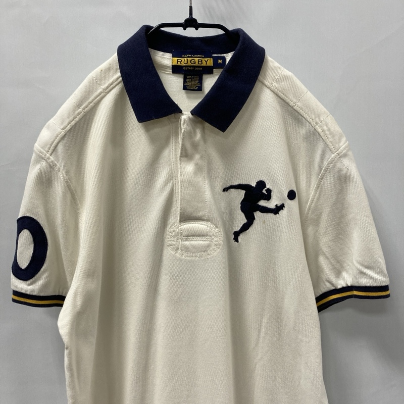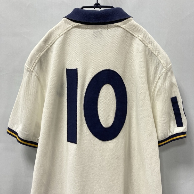 RUGBY RALPH LAUREN/ラグビー ラルフローレン/キッカー×ナンバリング刺繍/リブ切替/ S/S 鹿の子 ポロシャツ/#10/ホワイト×ネイビー