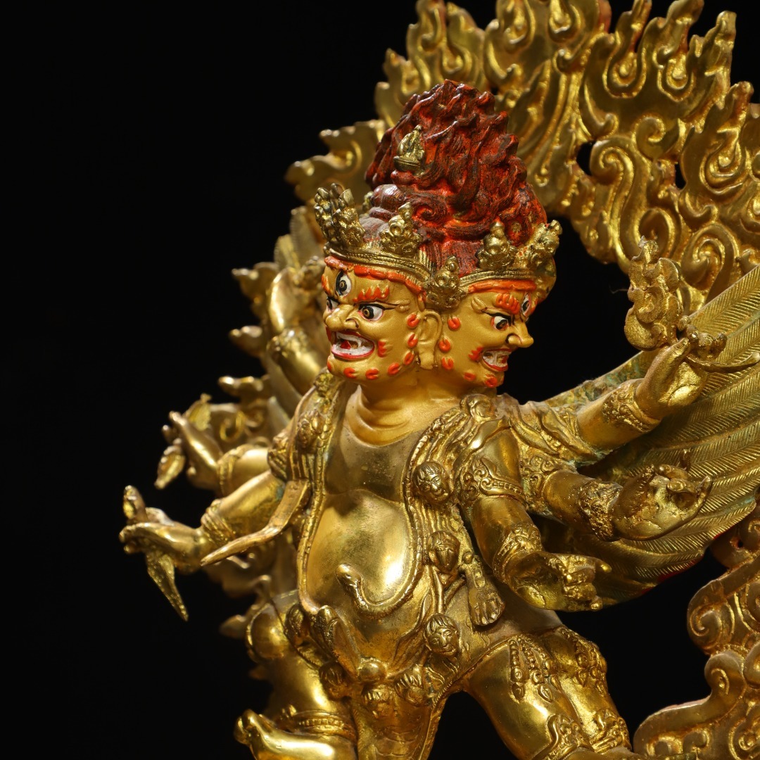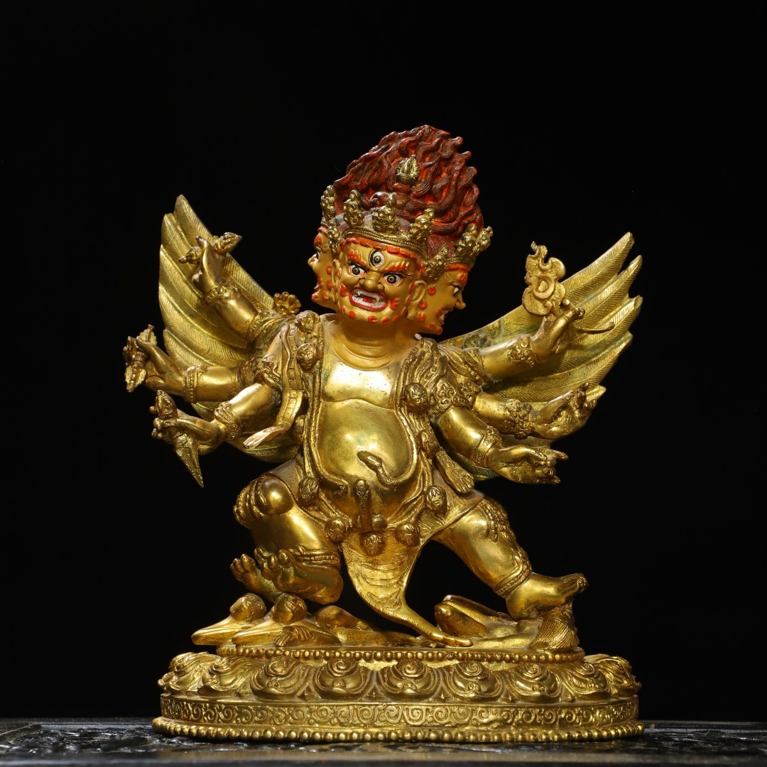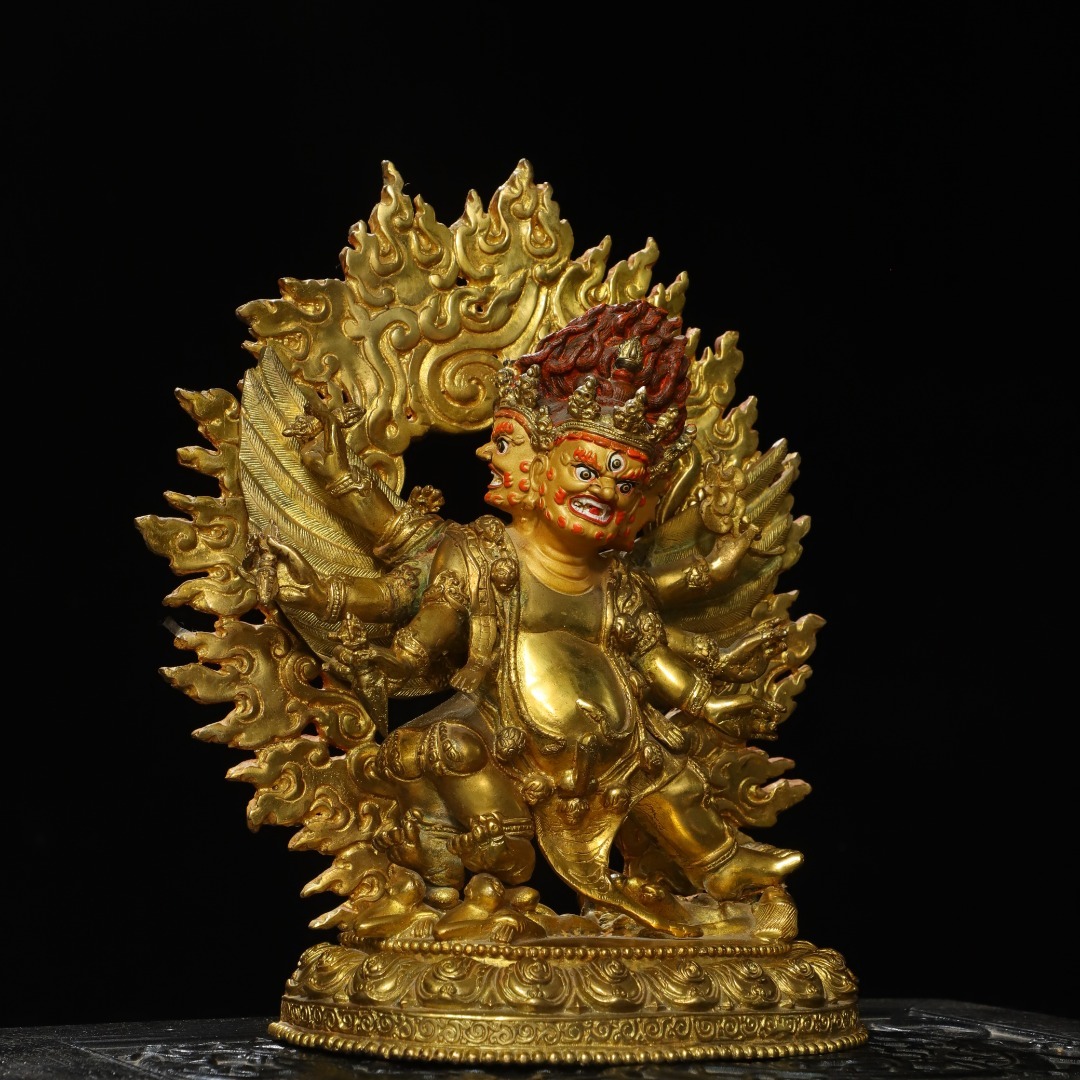 仏像 *珍品旧蔵* 清代 銅描彩【金剛】仏像 の置物 奉納されていた 供養品 銅製品 銅器 極細工 唐物 中国古玩 骨董品 古美味 fu8.7