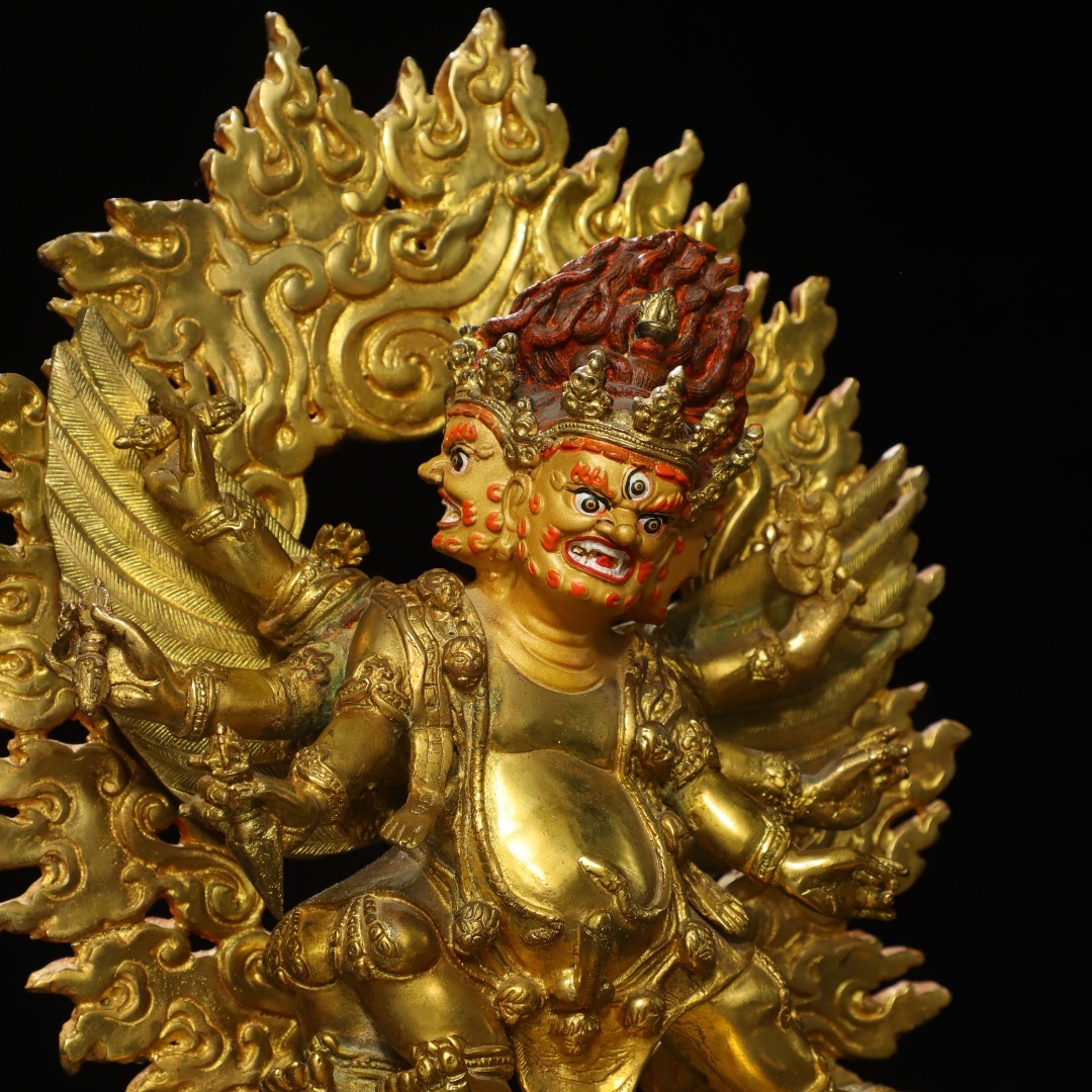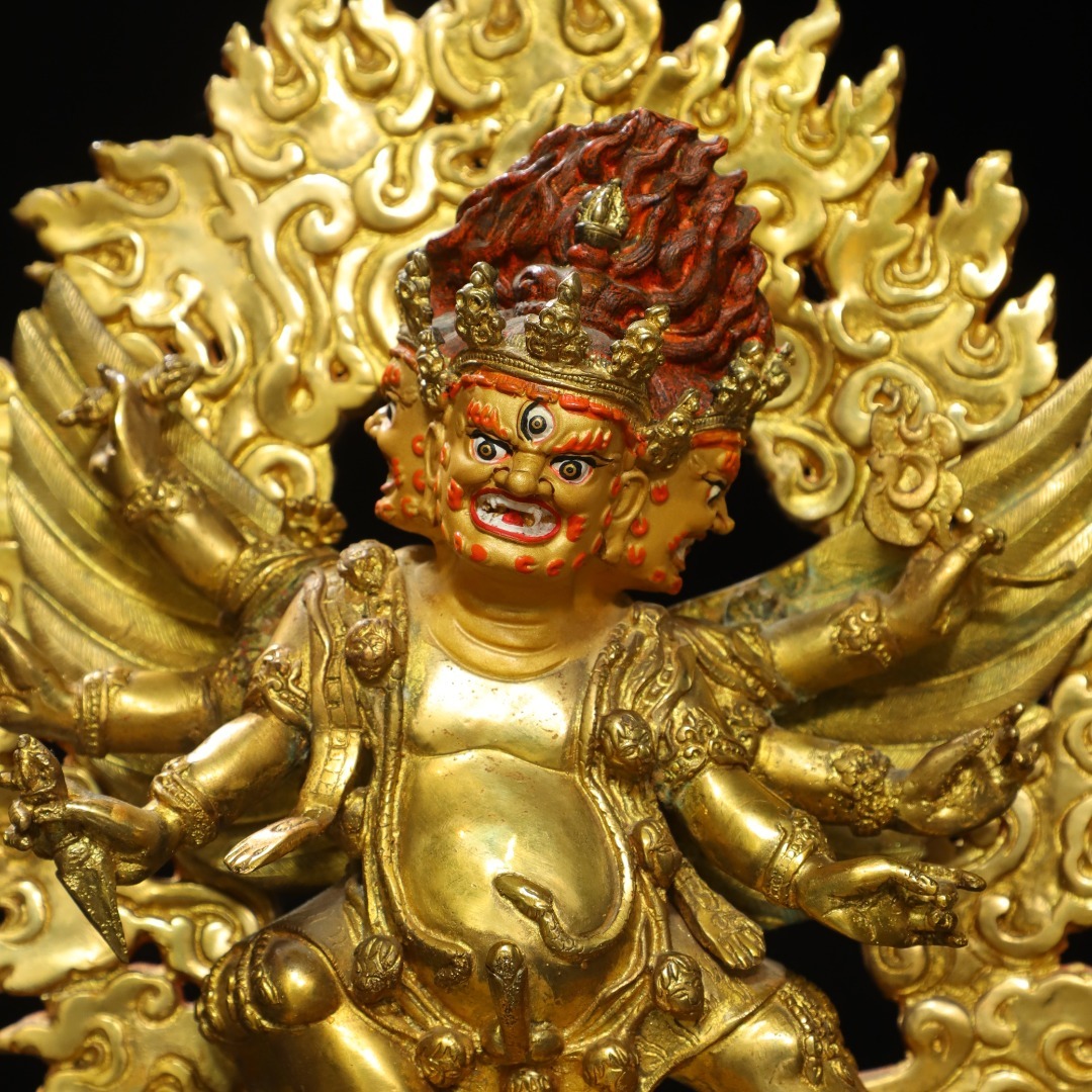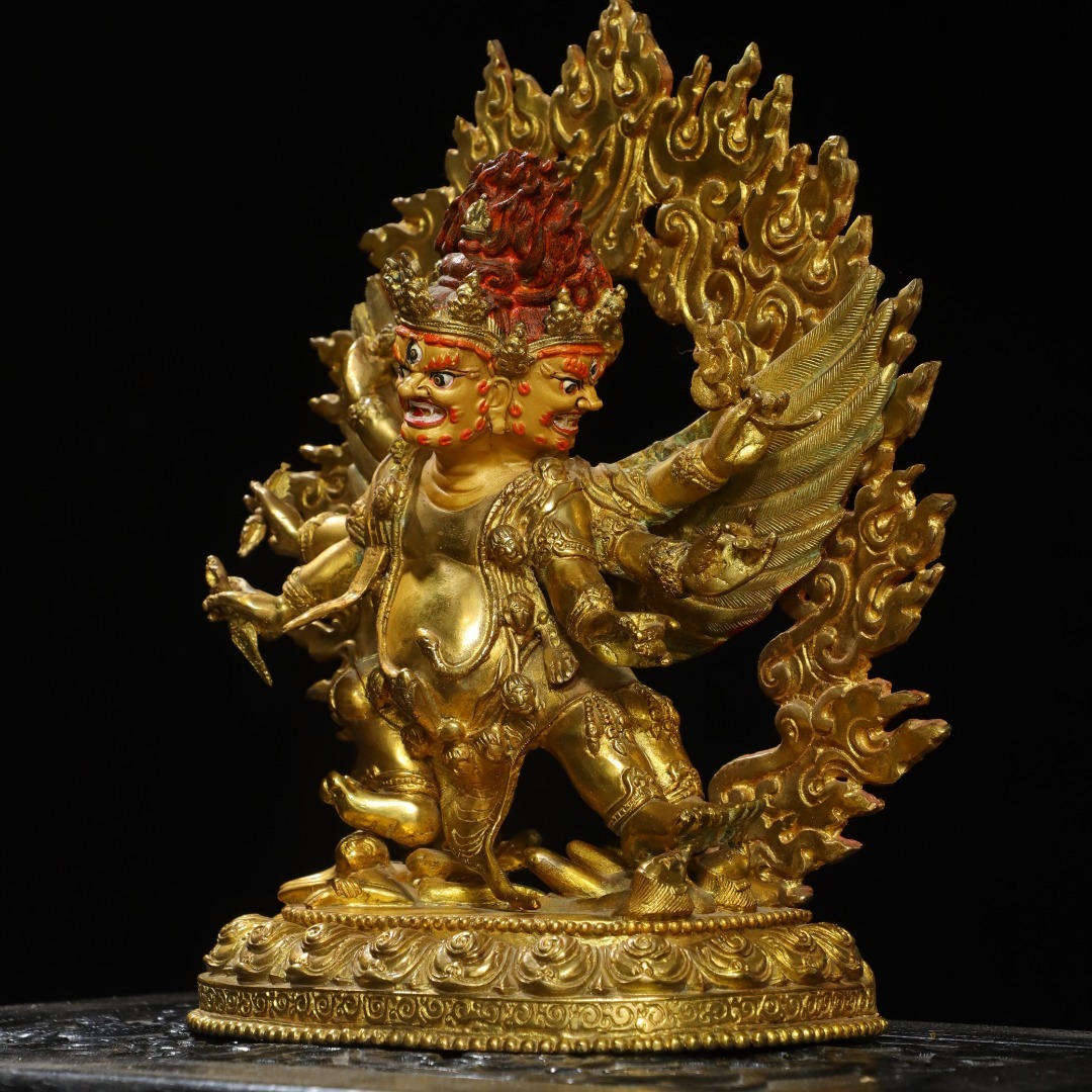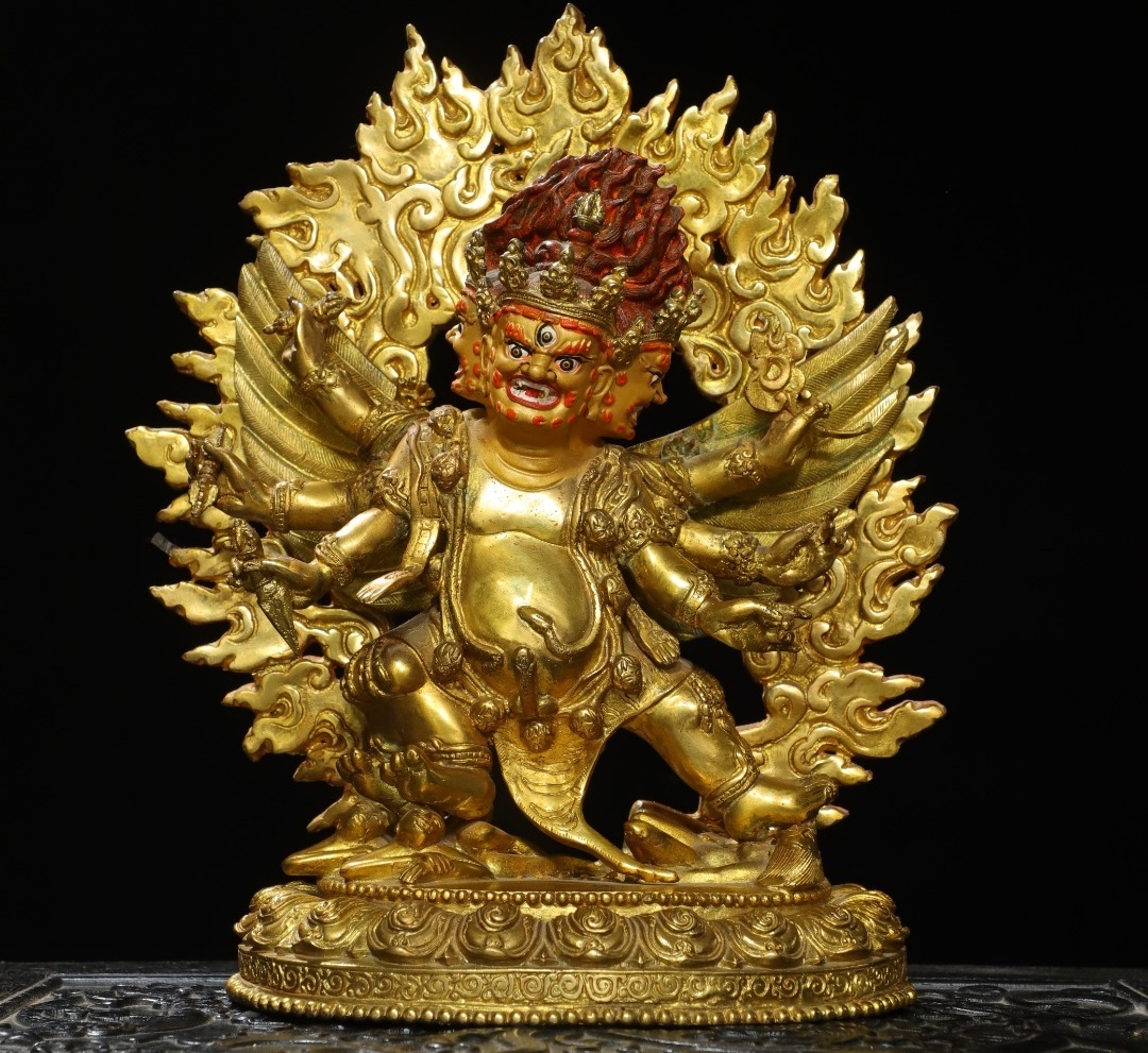 仏像 *珍品旧蔵* 清代 銅描彩【金剛】仏像 の置物 奉納されていた 供養品 銅製品 銅器 極細工 唐物 中国古玩 骨董品 古美味 fu8.7