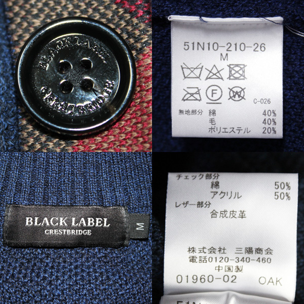 新品 BLACK LABEL CRESTBRIDGE 前立てCBチェック ニットブルゾン ハイネックカーディガン