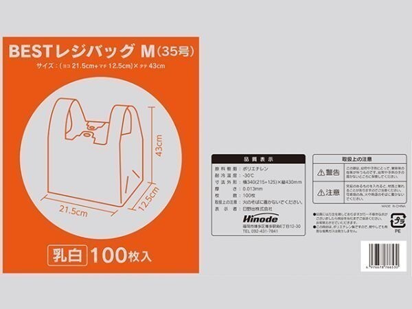![]() 激安!!レジ袋 Mサイズ(HDPE)|エンボス加工|乳白色 厚み0.013mm|タテ幅43cm|ヨコ幅21.5cm|マチ12.5cm(6.25X2) 1ケース バラ3000枚入り 即決価格&送料無料(北海道別途¥1650・沖縄別途¥3300) ■製造メーカー■ Hinode ■商品名■ BESTレジバックMサイズ 【寸法】 厚み0.013mm タテ幅43cm|ヨコ幅21.5cm|マチ12.5cm(6.25X2) 【材質】 HDPE ※高密度ポリエチレン※ 引っ張り強度が強く、耐熱・耐薬品性・耐ガスバリア性に優れます。 手触り感は硬く透明度は低いのが特徴です。 |