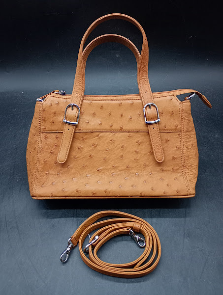 ▽【729】オーストリッチ 2WAYバッグ / 鞄 ショルダーバッグ ハンドバッグ レディース 茶 肩掛け 斜め掛け JRA クロスボディ