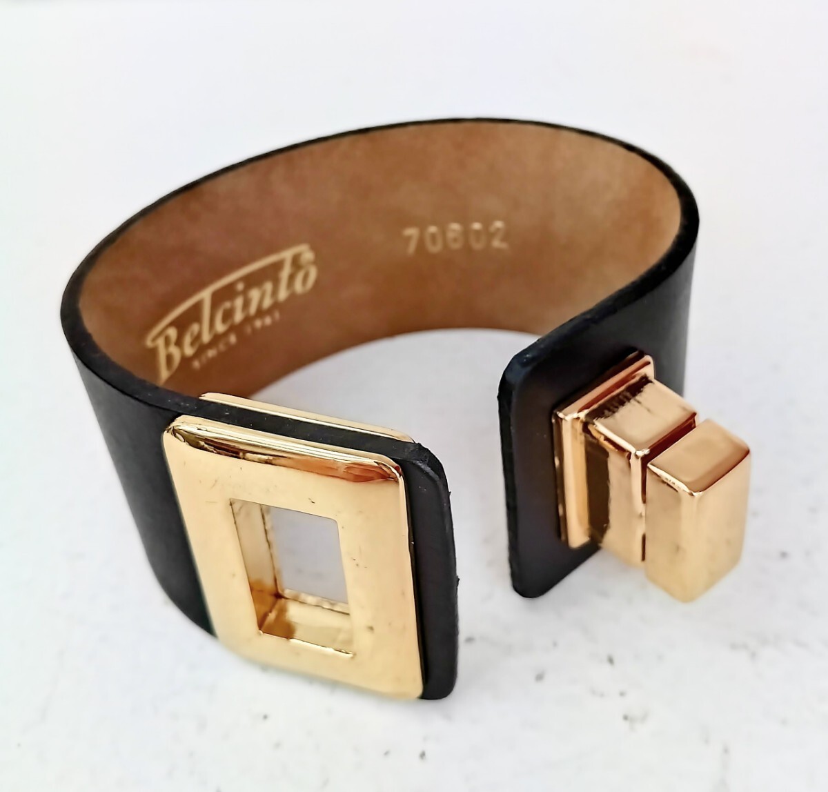 ポルトガル製 Belcinto ベルチント ブレスレット ブレス バングル レザー 革 ハンドベルト ブラック ゴールド 黒 金具 レザーベルト