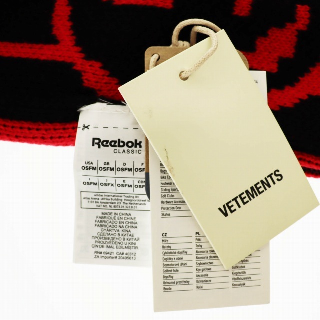 ヴェトモン ベトモン VETEMENTS ×Reebok リーボック 17AW ダブル ドッキング マフラー OSFX 黒 ブラック 赤 レッド ブランド古着ベクトル ☆AA★●▲■ 250809