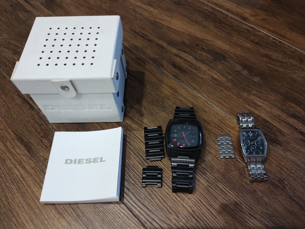 ディーゼルは購入時の箱と説明書付きです。ベルトもありますので腕周りの調整は可能。