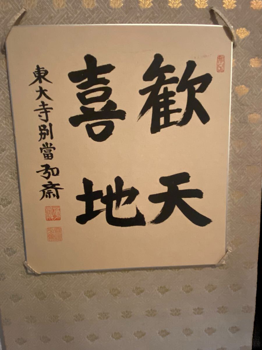 | 商品説明 | 【中古・色紙】東大寺別当 守屋 弘斎 揮毫 色紙『観天喜地』書道作品 仏教美術 禅語 変色 シミあり ・祖母より譲り受けた物で、東大寺別当守屋 弘斎による揮毫色紙『観天喜地』との事です。 ・「観天喜地」は、天に歓び、地にも歓ぶという意味を持ち、喜びの極みを表す四字熟語です。 ・仏教美術や禅語書道作品としても人気のある題材との事です。 状態:経年によるスレ・傷・保管汚れがあります。 (詳細は写真にてご確認ください) サイズ(約):27×24㎝(色紙) :127×33㎝(掛け軸) ★家で掛け軸としてかけていたとの事でその後、倉庫での保管品です。 ★付属品は写真の物が全てです。 ★商品状態は写真を参考にしてください。 ★保存期間が長いので経年による軽いスレ、色褪せ、傷等はあります。 |