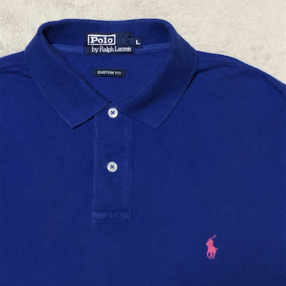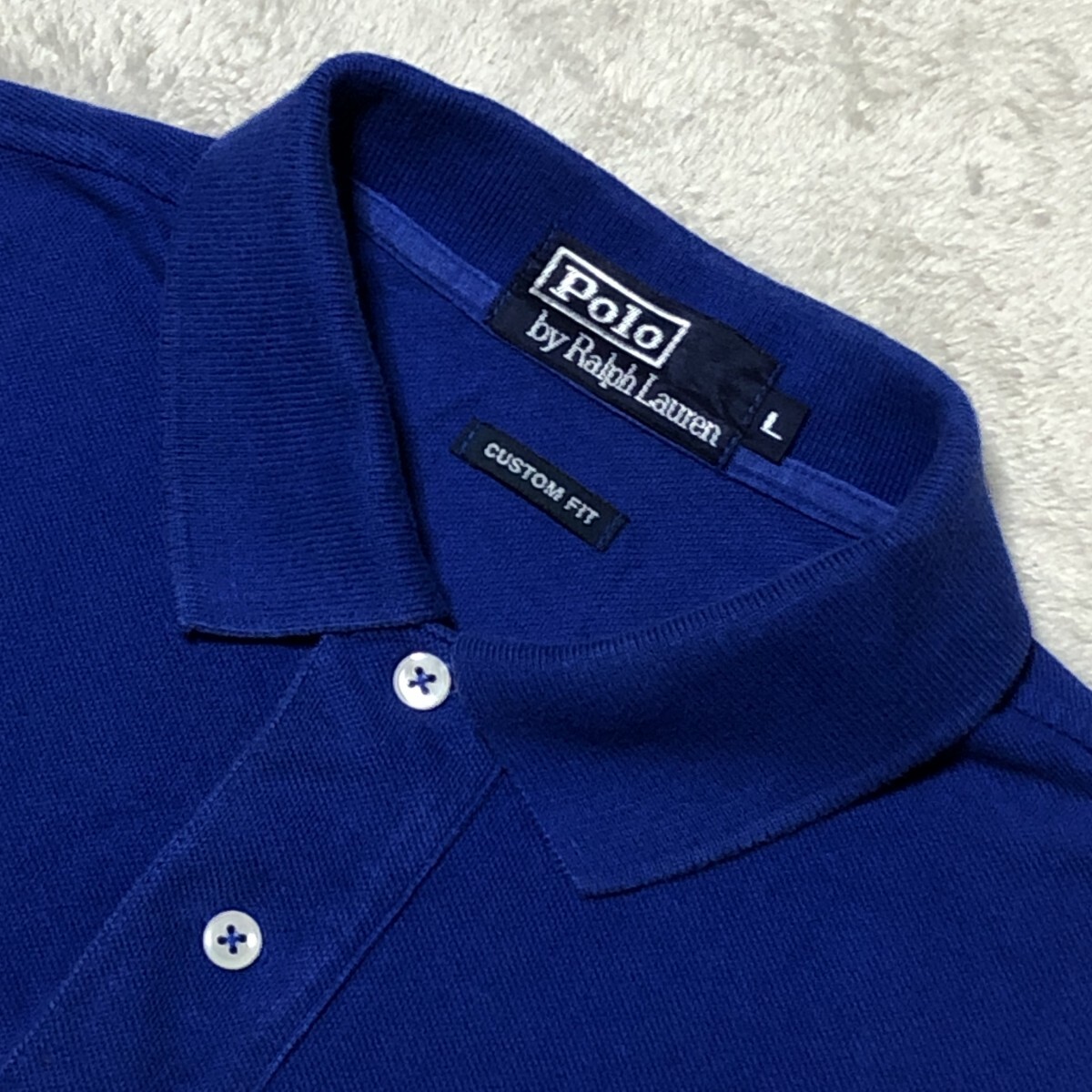 POLO BY RALPH LAUREN ポロ バイ ラルフローレン 半袖ポロシャツ 鹿の子 ポニー刺 ロゴ刺繍 ブルー カスタムフィット 人気の大きいサイズ Lサイズ