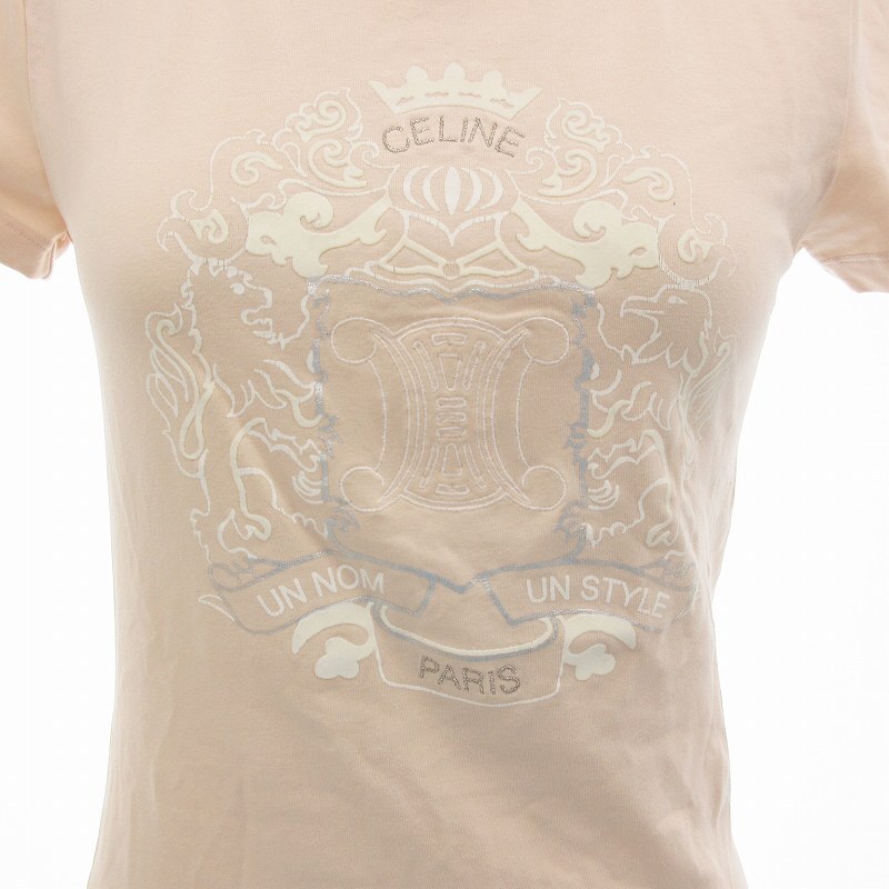 セリーヌ CELINE Tシャツ カットソー トリオンフ ロゴ刺繍 半袖 S ピンク /FF IBO78 レディース