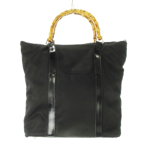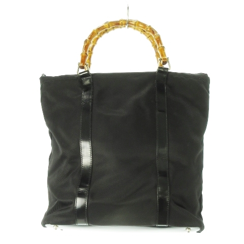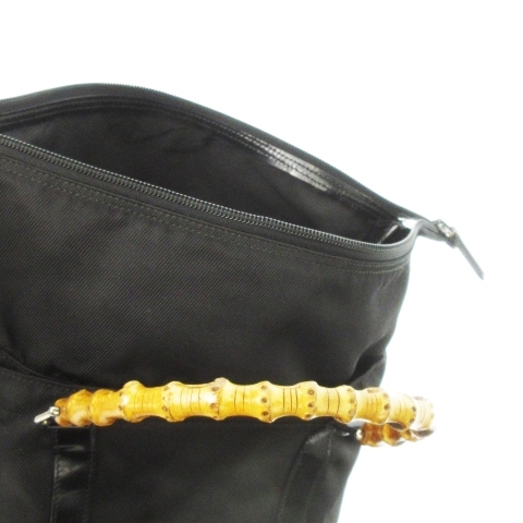 グッチ GUCCI ハンドバッグ ナイロン レザー 革 バンブーハンドル 黒 ブラック 000 1998 0508 /CK16 ■GY18 レディース