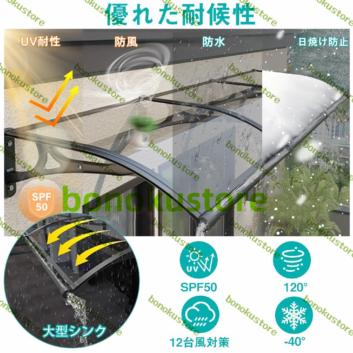 ひさし 屋根庇 住宅庇 簡易屋根 雨よけ テラス屋根 玄関 パティオ日除け 後付け 雨雪パネルをミュート 雨よけ アルミニウム合金ブラケット 排水機能付き 後付け庇 組み立てが簡単 梅雨対策 雨雪保護 無音 住宅用 キャノピー シェルター雨よけ日よけに 窓/玄関などに設置 -グレー/60x360cm