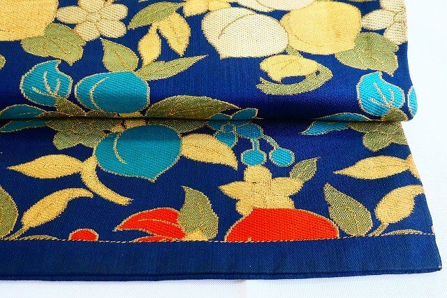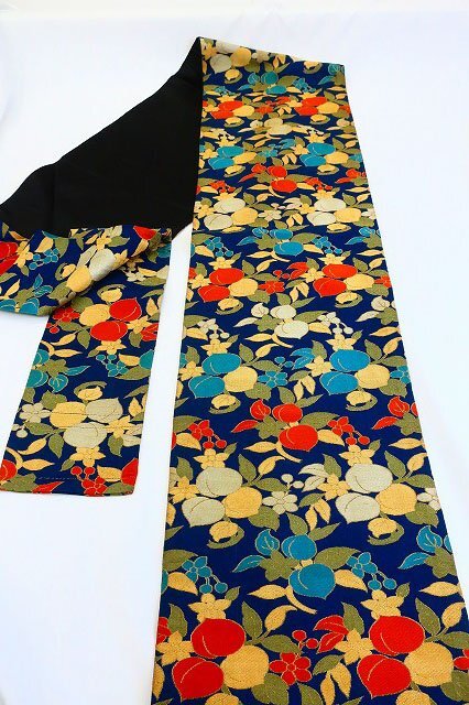 アンティーク 名古屋帯 木の実 長さ3m34㎝ 紺青色 大正ロマン レトロ お洒落 仕立て上がり 着物フィ 19647 |
