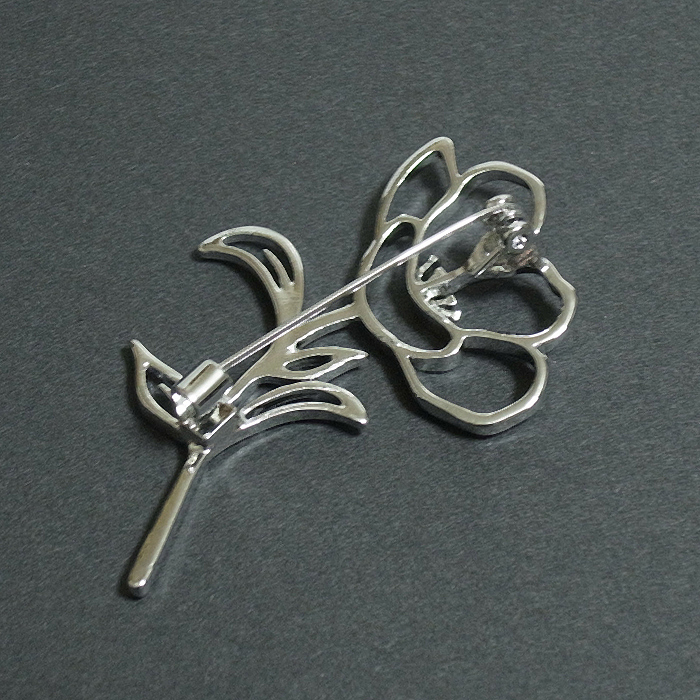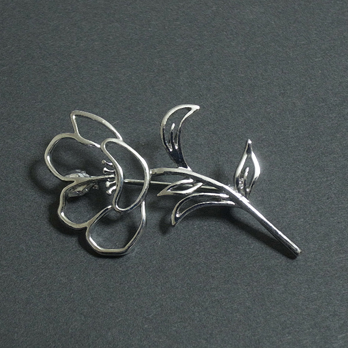ラペルピン★ブローチ 花 フラワー 一輪 ラインアート シルバー pin-2084
